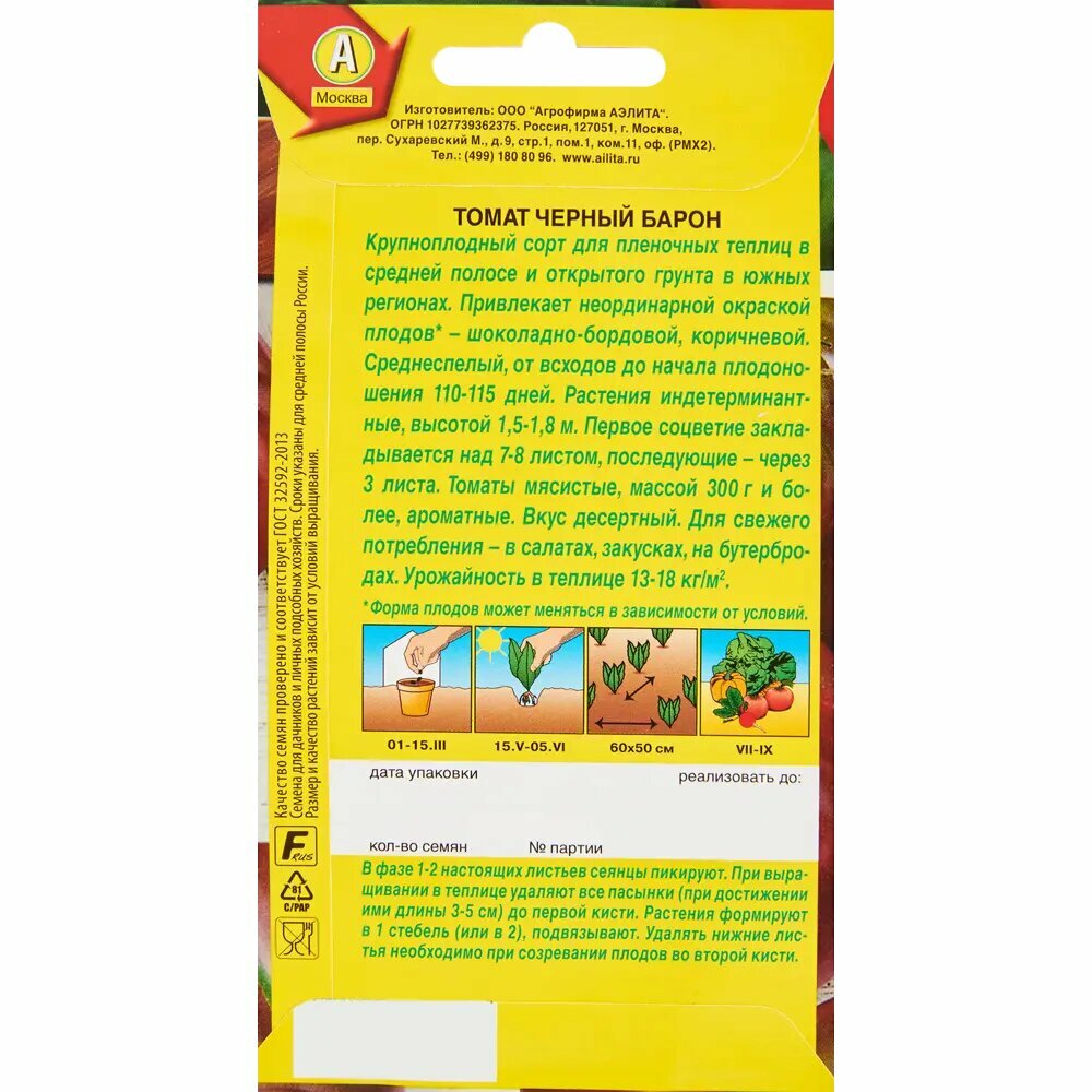 СохранитьСемена Томат Черный барон, высокорослый, (Аэлита) 20шт интересное:
