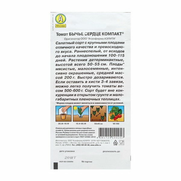 Семена "Томат Бычье Сердце" от бренда "Аэлита", серия "Лидер", 20 семян в упаковке
