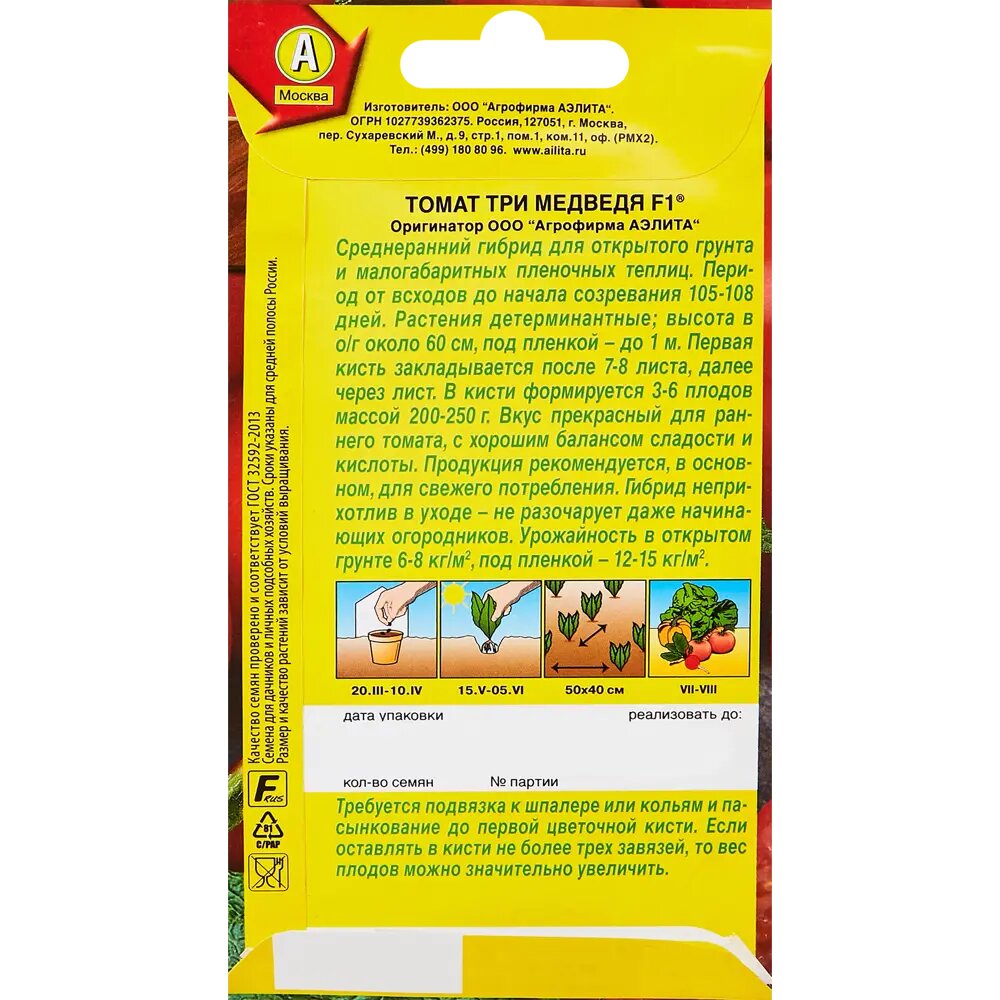СохранитьСемена Томат Три медведя 20шт Дет Ранние (Аэлита) интересное: