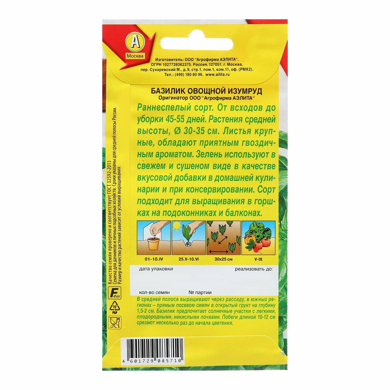 Ниже Вы можете прочитать отзывы на Семена Базилик овощной «Изумруд» 0.3 г, ознакомится с подробными характеристиками, посмотреть интересные обзоры и фотографии на Семена Базилик овощной «Изумруд» 0.3 г.