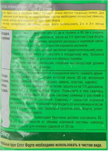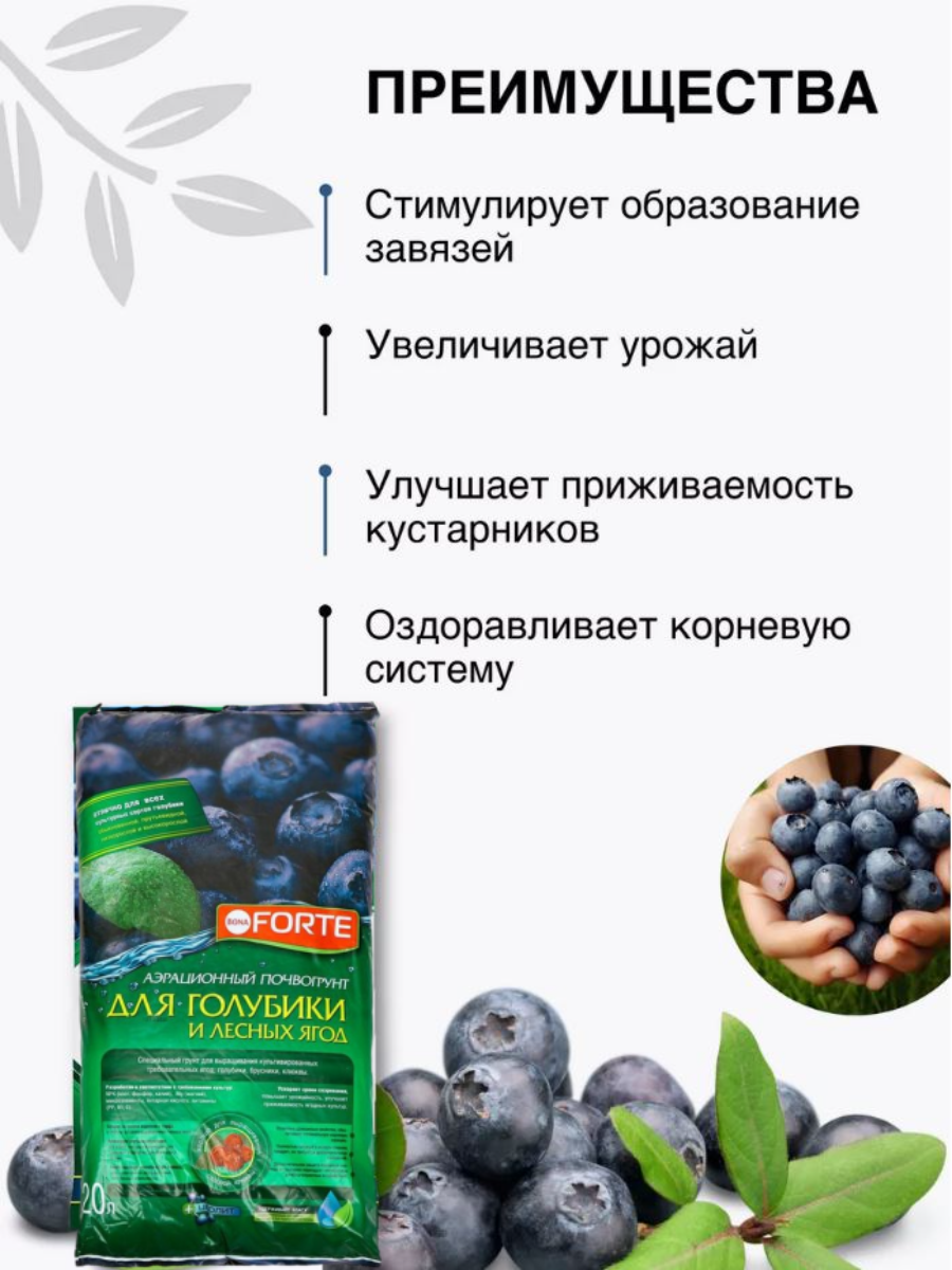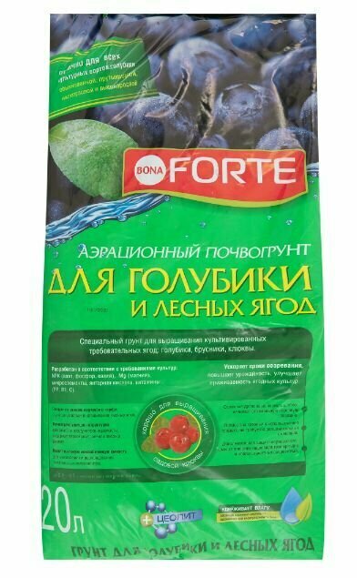 | Состав | Аэрационный почвогрунт для голубики и лесных ягод Bona Forte, 20 л |