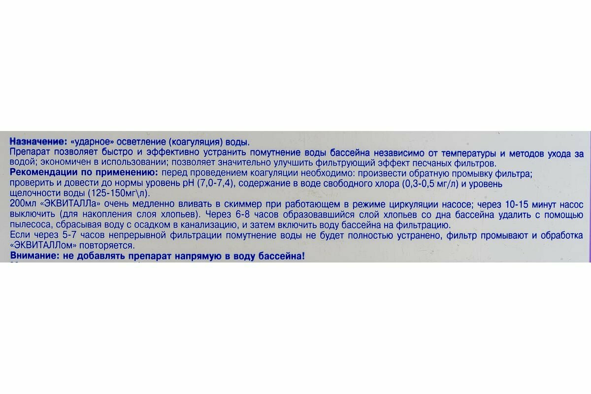 Эквиталл (3л) коагулянт для бассейна - жидкий быстрого действия. Маркопул Кемиклс. интересное: