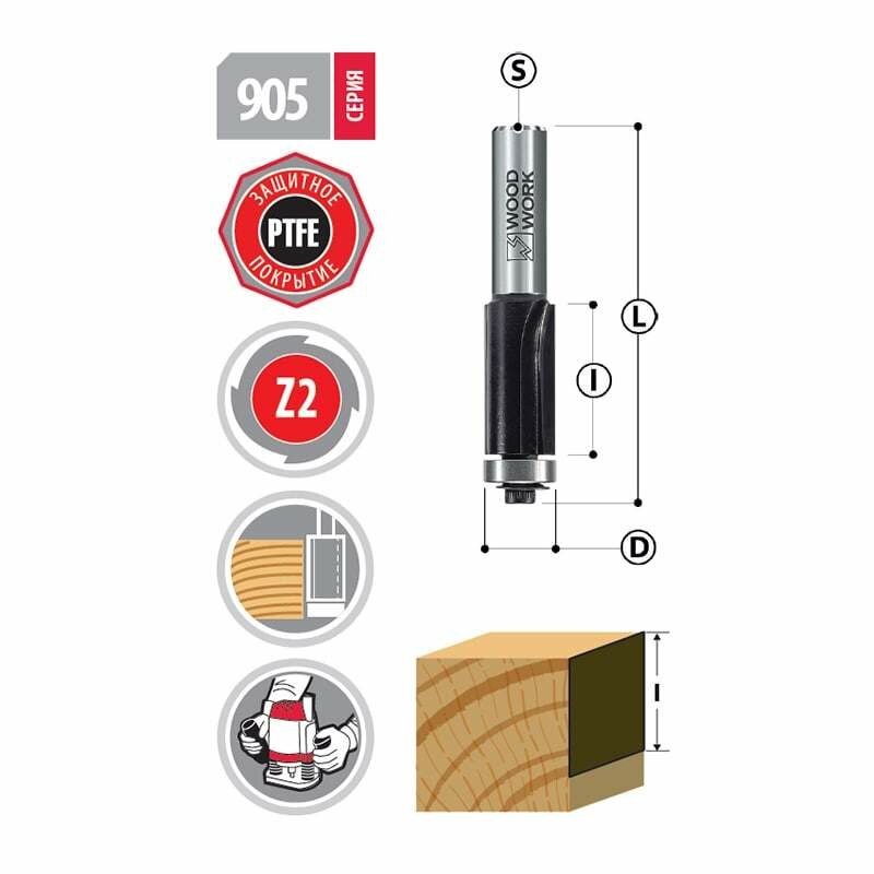 Фреза прямая с подшипником D-19mm I-26mm S-12mm WOODWORK 901.1926.12
