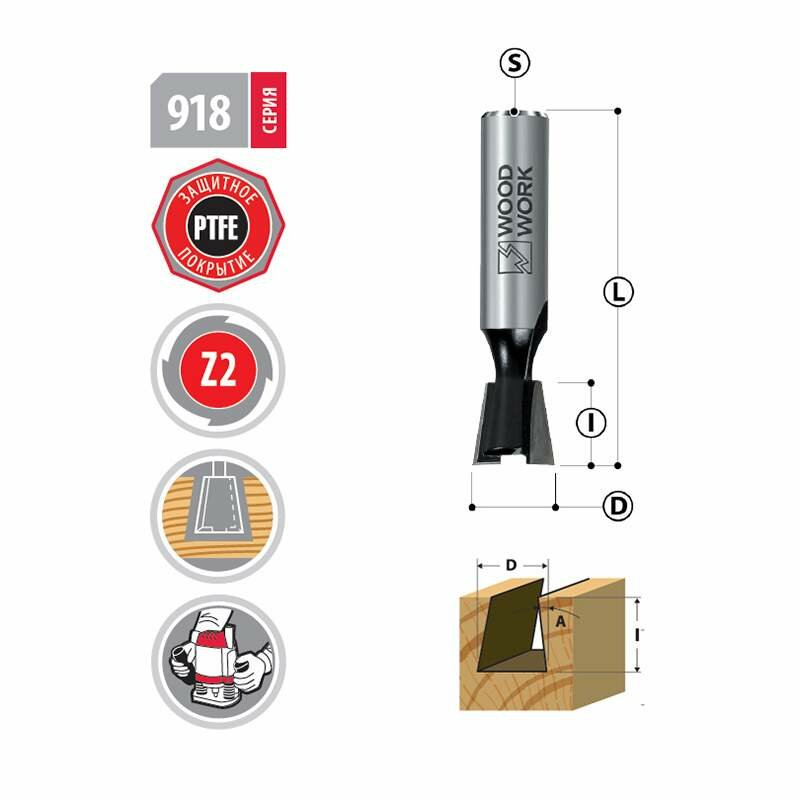 Фреза ласточкин хвост D-19 S-12 угол-7 WOODWORK 918.1907.12