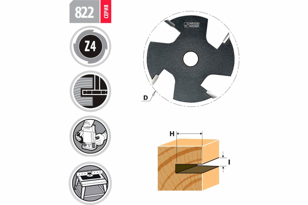 Фреза пазовая D-6mm I-19mm S-8mm WOODWORK 911.0619.08