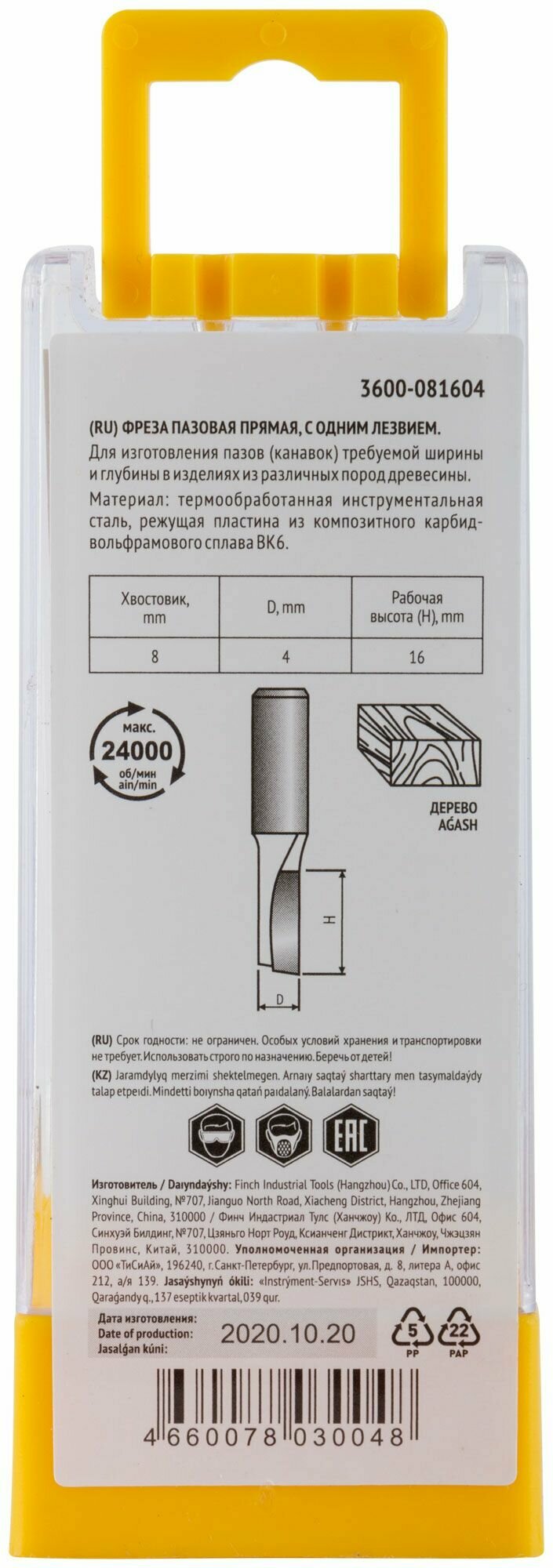 Купить Фреза пазовая прямая с одним лезвием DxHxL-4х16х55мм FIT