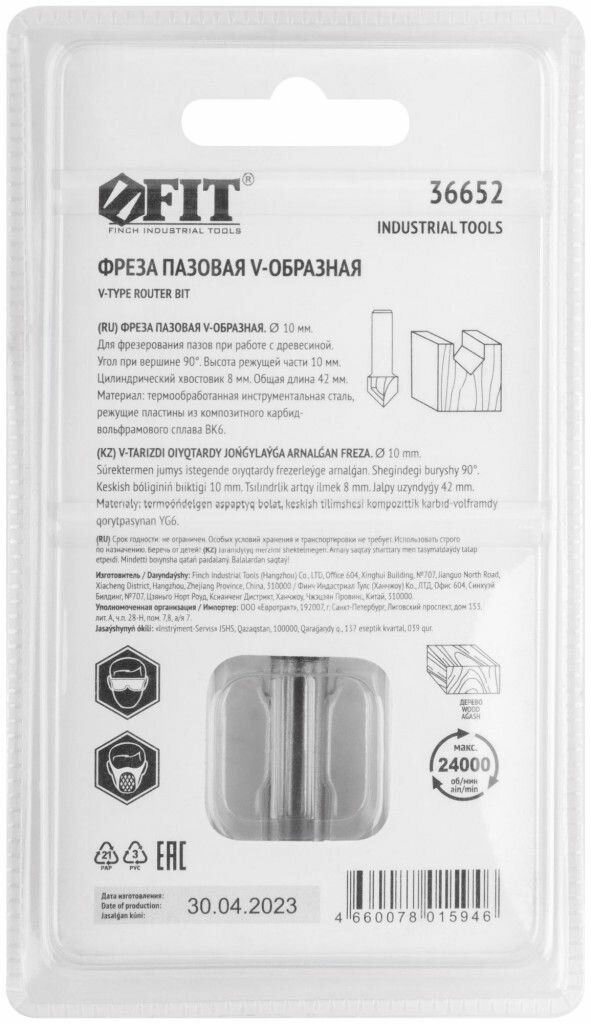 Купить Фреза FIT пазовая V-образная 10х10х42мм (36652)