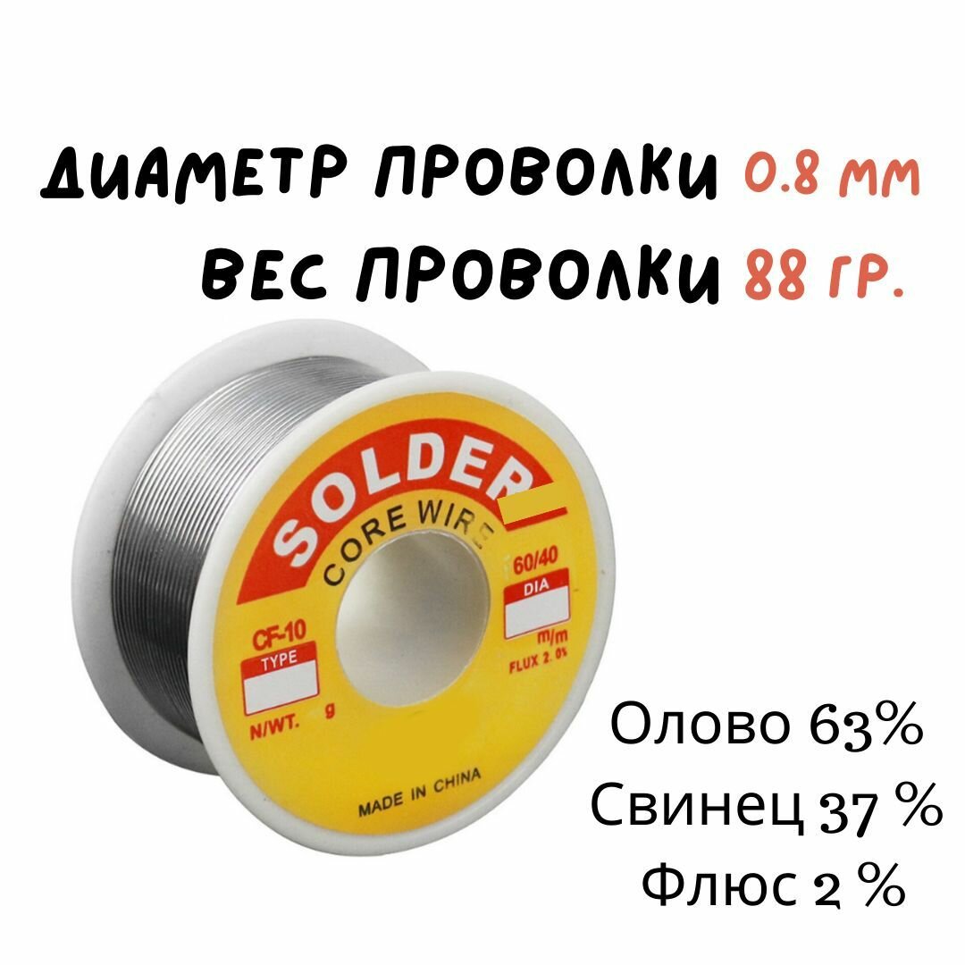 Припой для пайки с флюсом 0.8 мм 100 гр интересное: