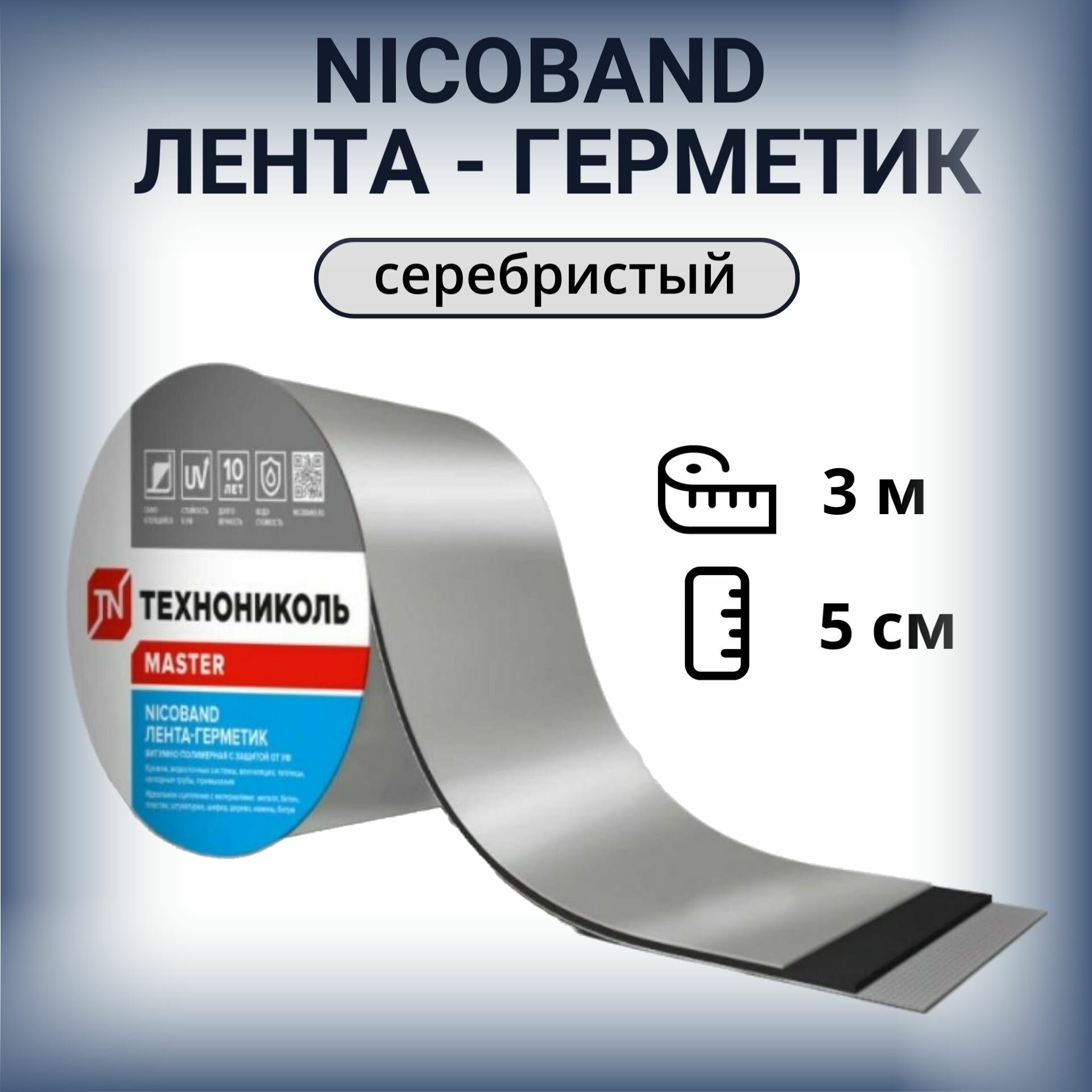 Лента-герметик самоклеящаяся Технониколь Nicoband, битумно-полимерная, 3 м x 5 см, серебристая