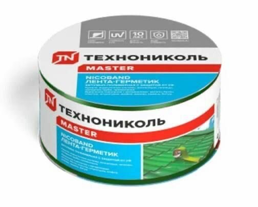 Лента-герметик ТехноНиколь NICOBAND, самоклеящаяся, Серебристая, 3м х 10см, универсальная