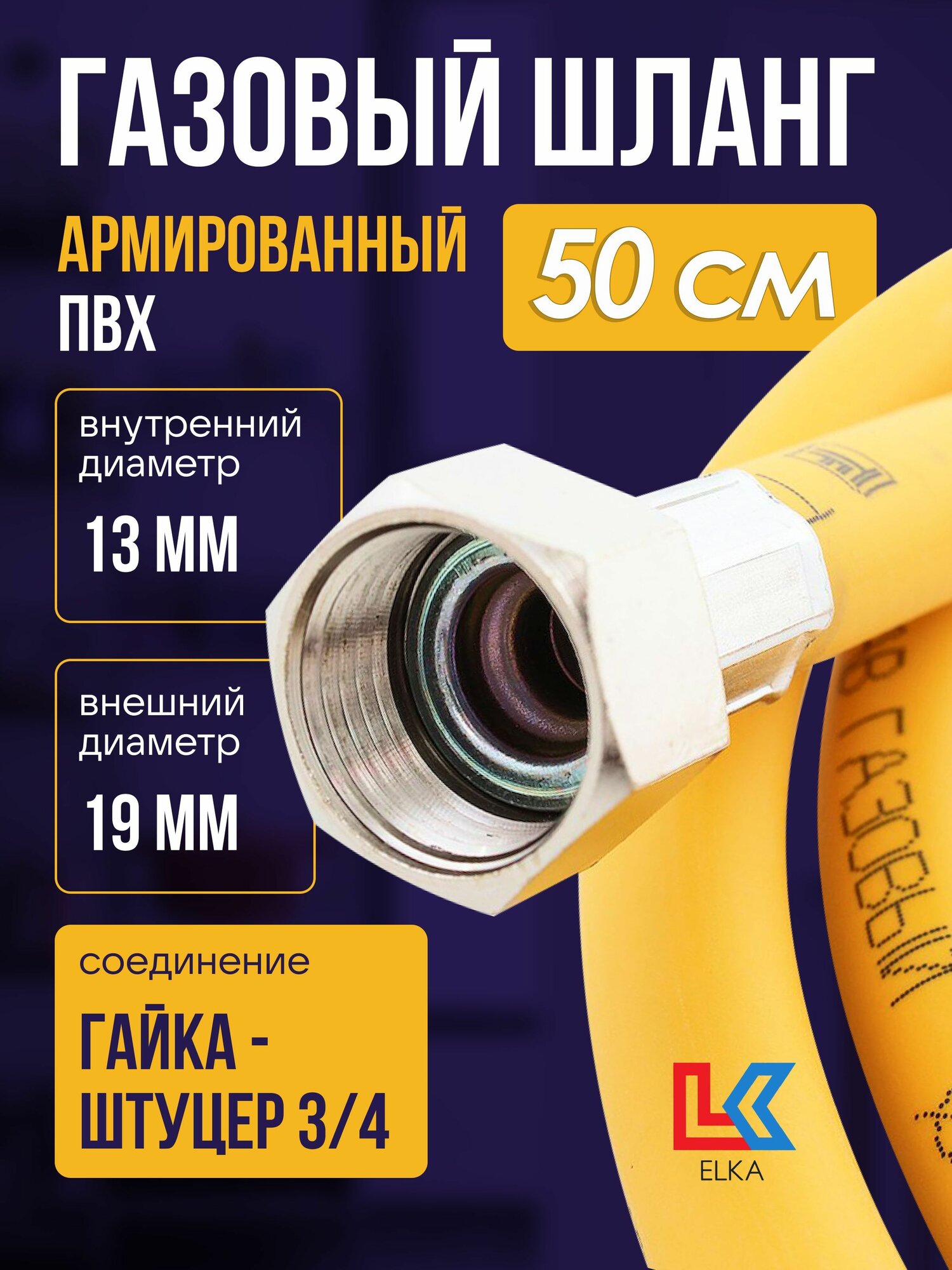 Шланг для газовых приборов 0,5 м ПВХ армированный ELKA 3/4" г/г (в/в) / Шланг газовый 50 см