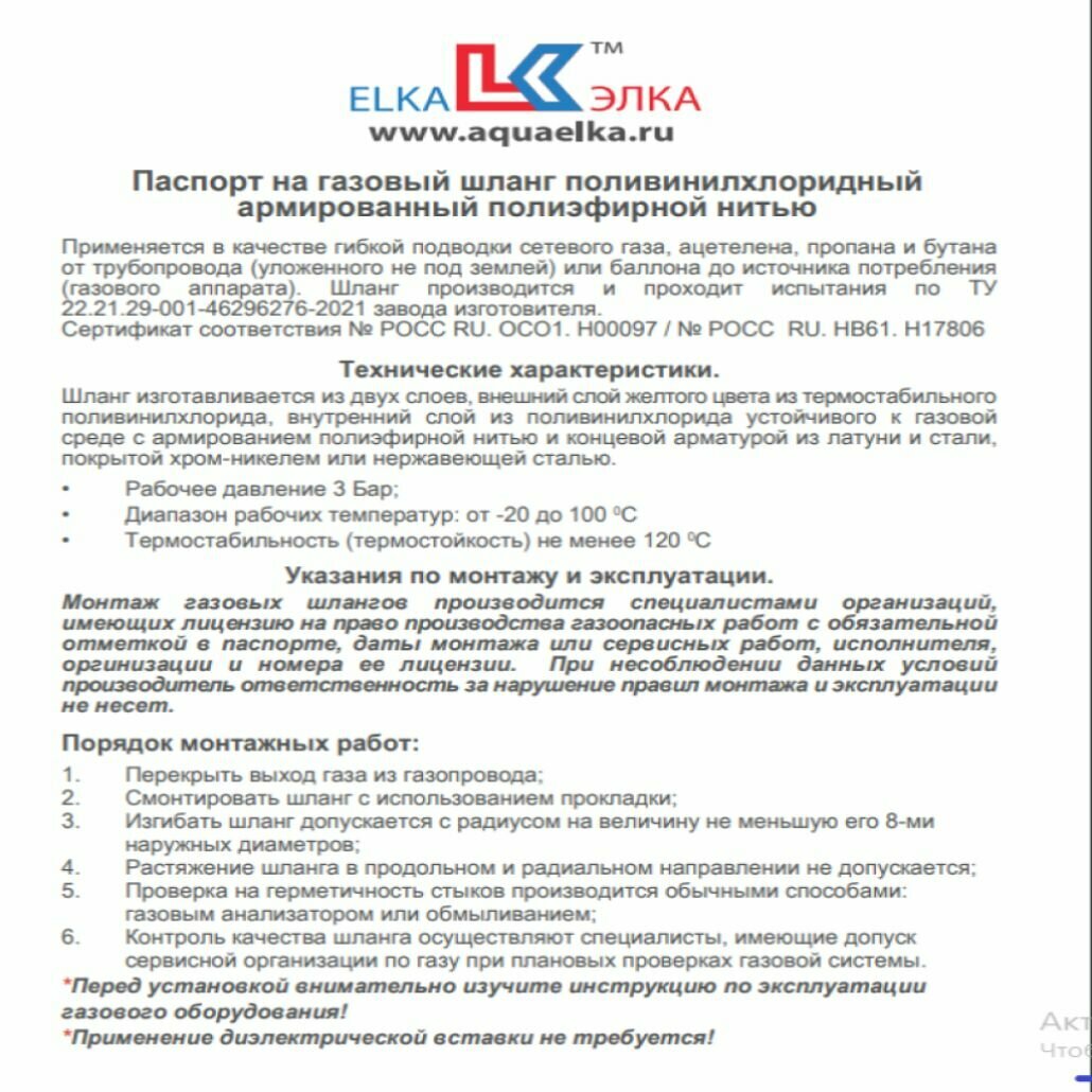 Ниже Вы можете прочитать отзывы на Шланг для газовых приборов 6 м ПВХ армированный ELKA 3/4" г/ш (в/н) / Шланг газовый 600 см, ознакомится с подробными характеристиками, посмотреть интересные обзоры и фотографии на Шланг для газовых приборов 6 м ПВХ армированный ELKA 3/4" г/ш (в/н) / Шланг газовый 600 см.