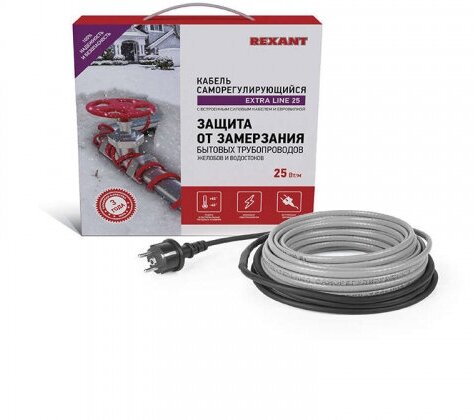 Комплект греющего кабеля REXANT 30 Вт/м для установки на трубу, кровлю, водосток, 220 В, 25 м