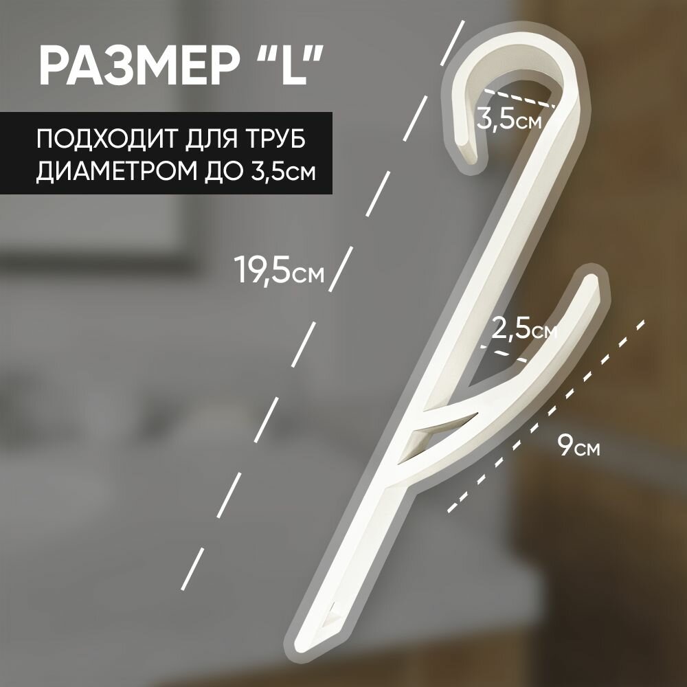 Крючки для ванной 2 шт. белые большие для труб диаметром до 3,5 см на полотенцесушитель (для полотенец) пластиковый