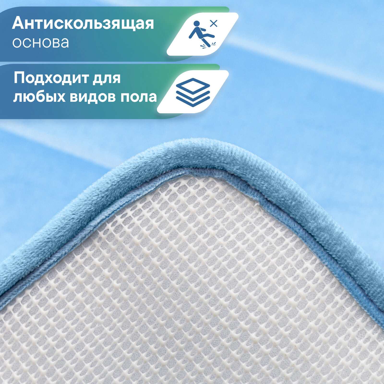 СохранитьКоврик для ванной комнаты и туалета 60х100 см VILINA мягкий текстильный противоскользящий ворсовый влаговпитывающий однотонный "Велюр" голубой интересное: