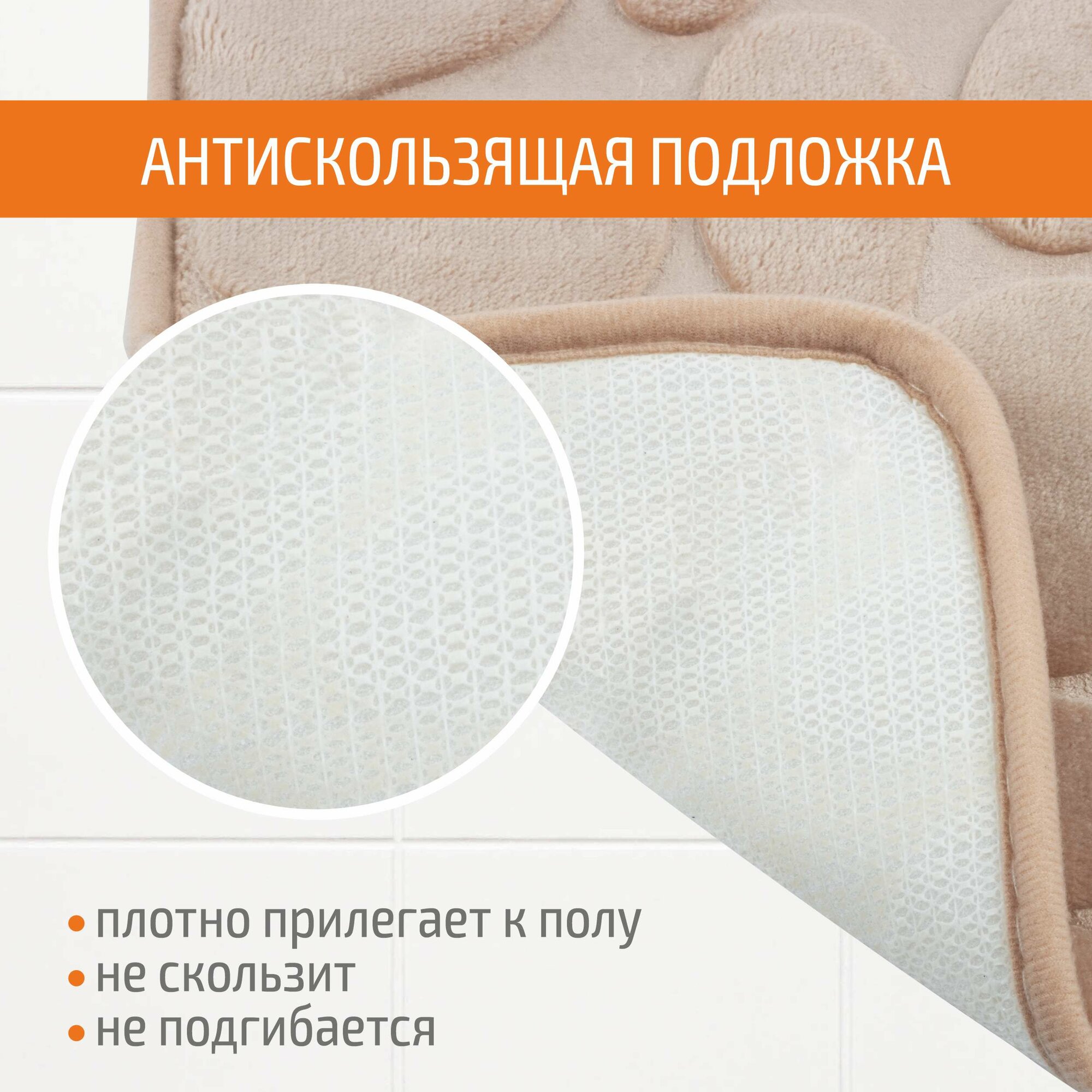 | Подробная комплектация | Коврик для ванной "Stone" - 40*60 см, - цвет-бежевый - 1 шт. |