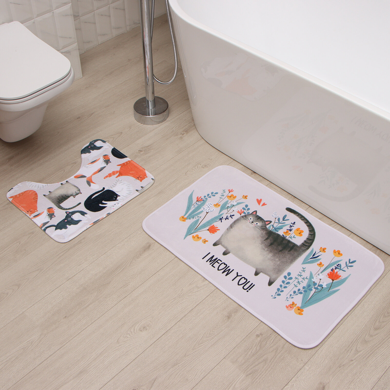 Набор ковриков для ванной Этель "Котики" 2 шт, 80х50 см, 50х40 см, велюр