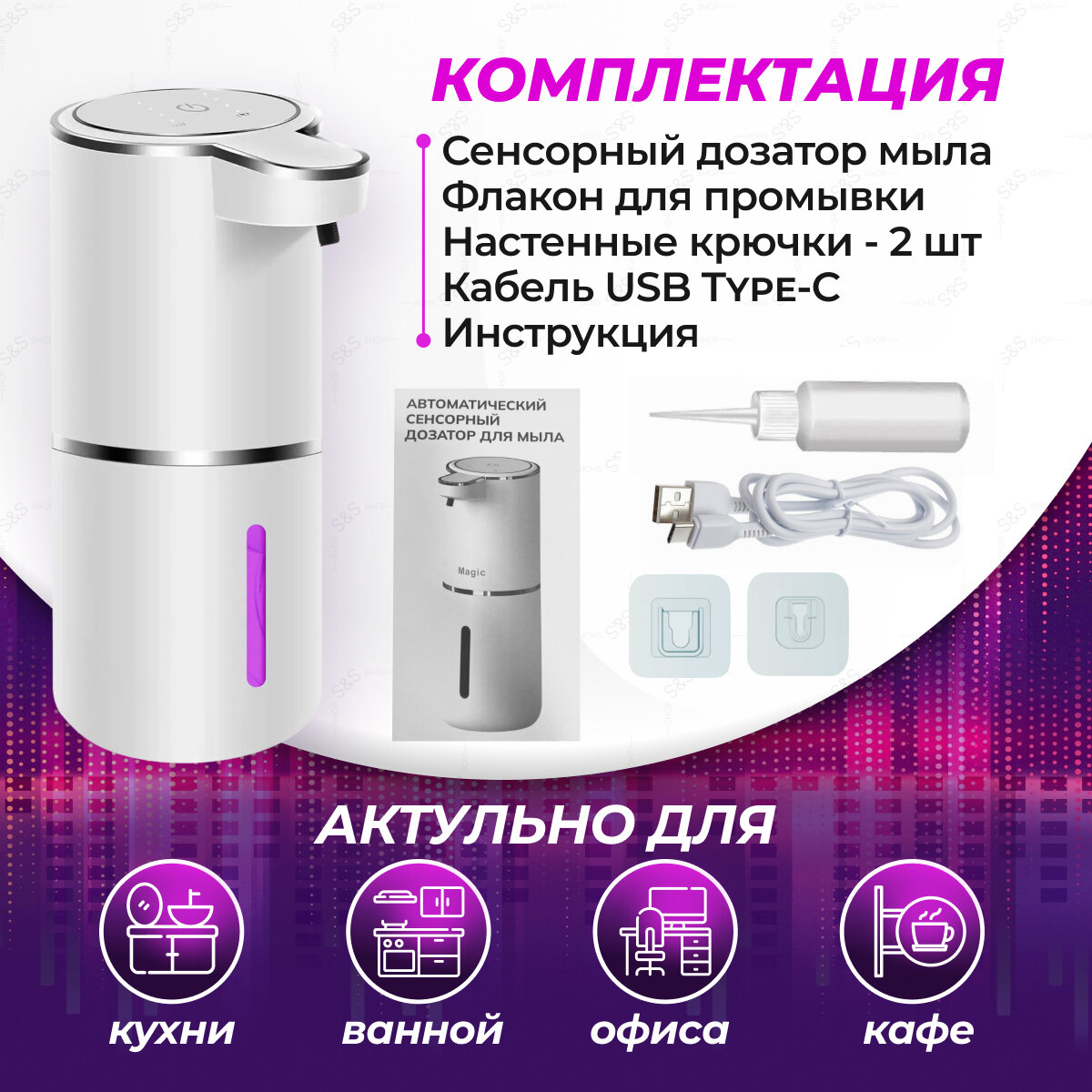 Дозатор для жидкого мыла сенсорный диспенсер для пены, 4 режима, белый интересное:
