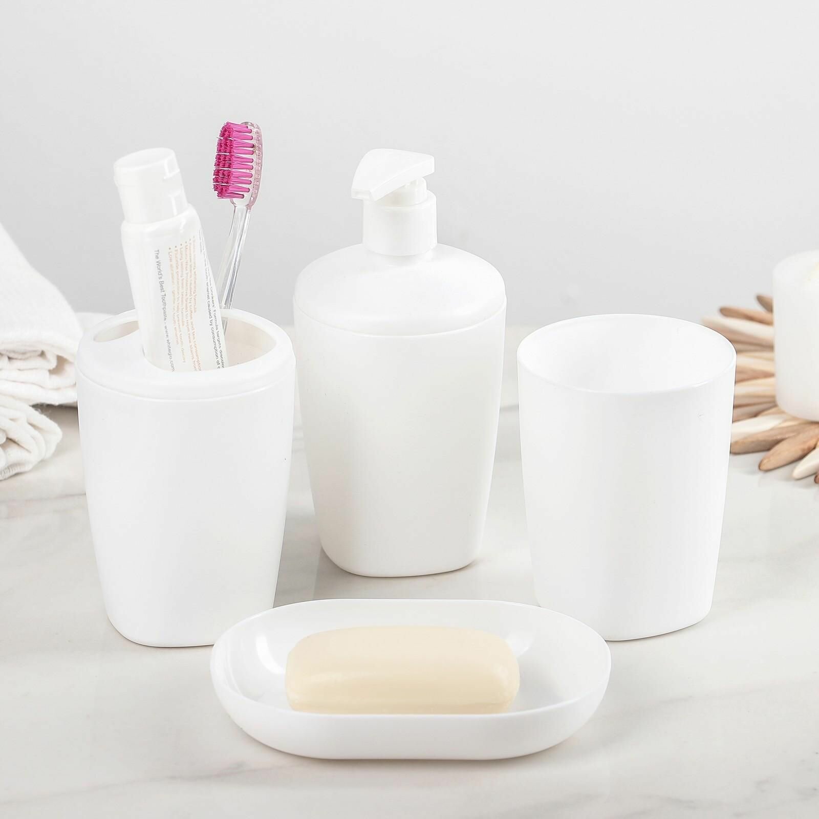Набор аксессуаров для ванной комнаты Aqua, 4 предмета (дозатор, мыльница, 2 стакана), цвет белый