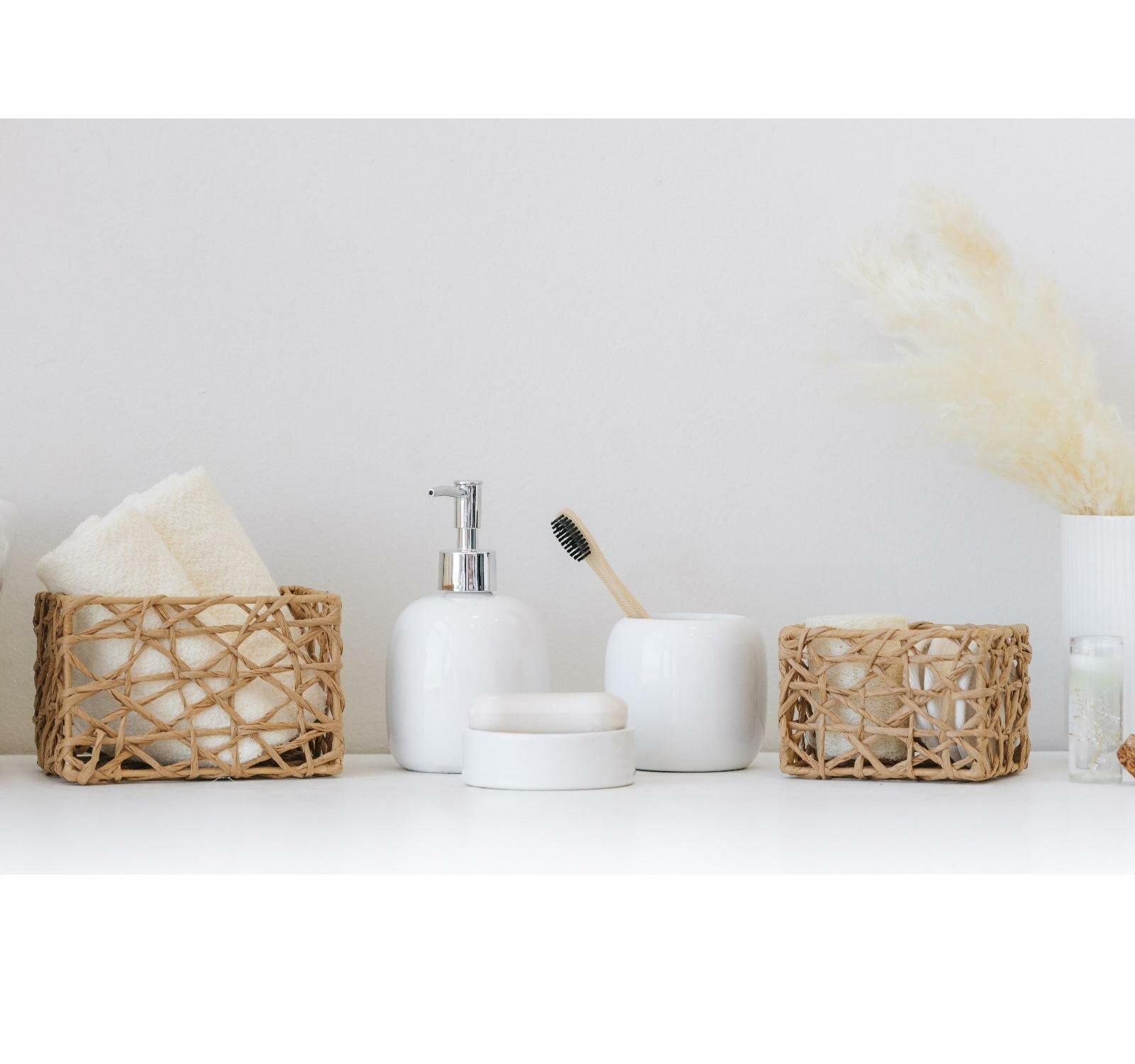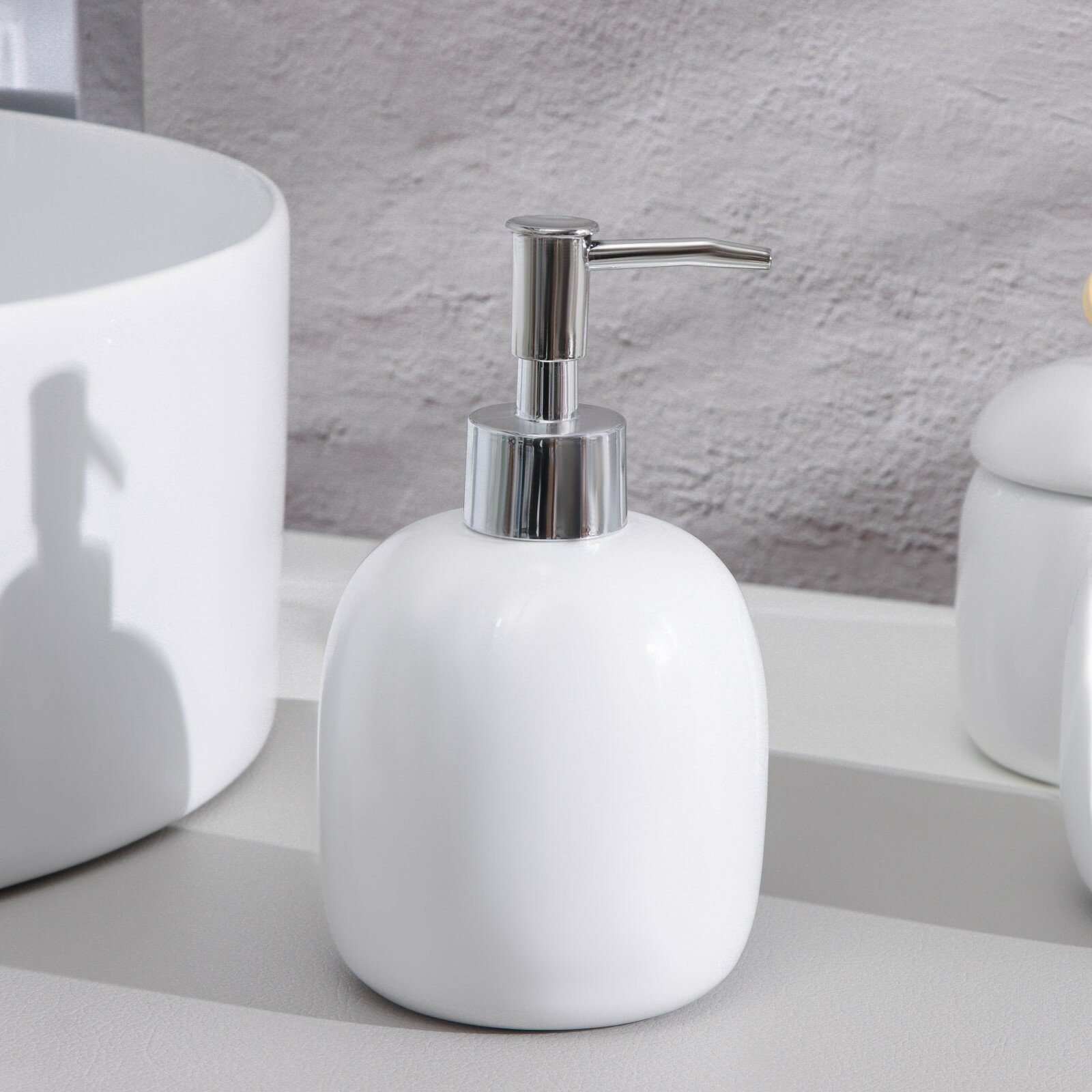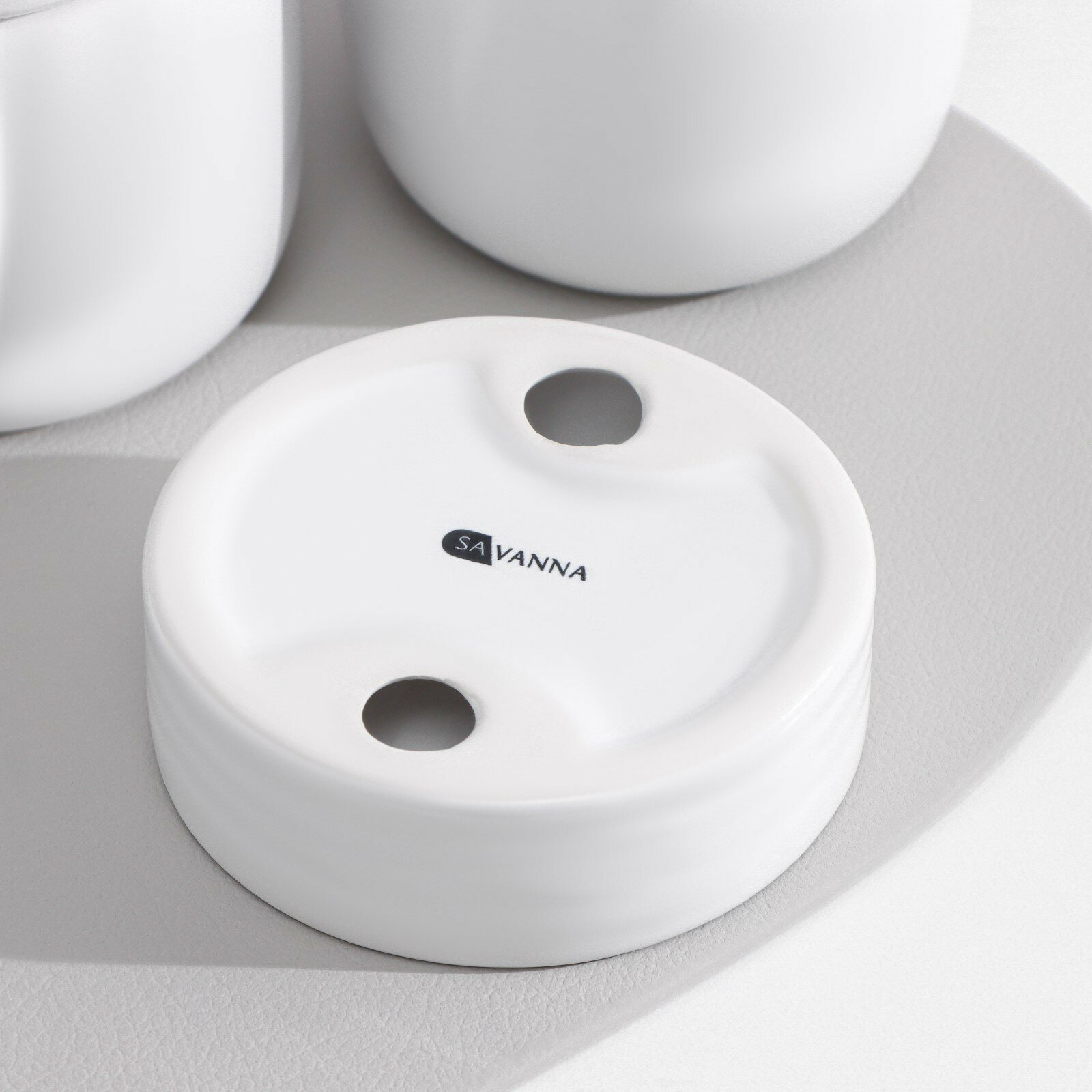 Аксессуары для ванной SAVANNA Monro, 4 предмета: мыльница, дозатор для мыла 450 мл, стакан, баночка, белые