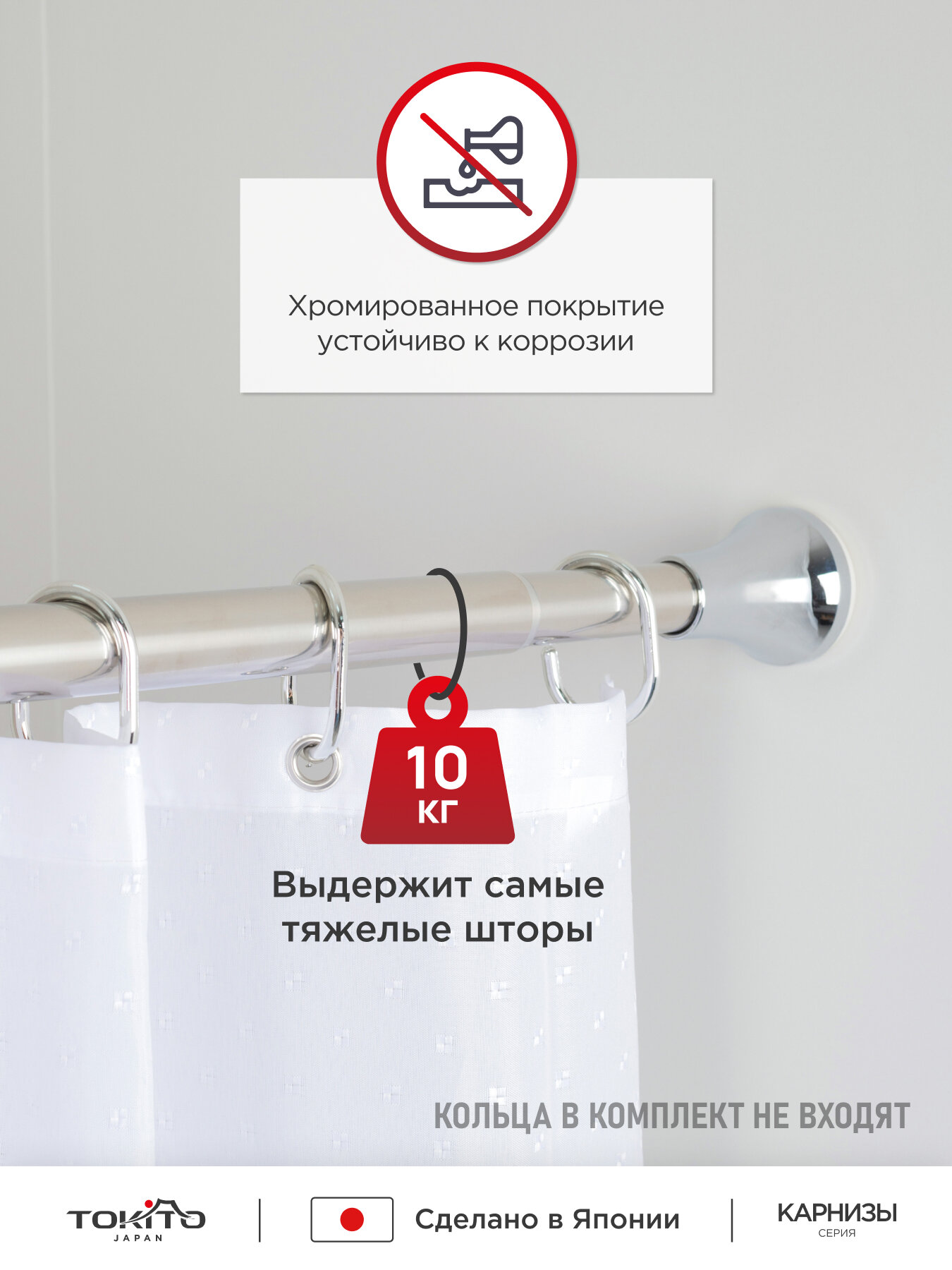 Купить Карниз для ванной TOKITO, нержавеющая сталь 130-240 см, хром TOK-240CHR