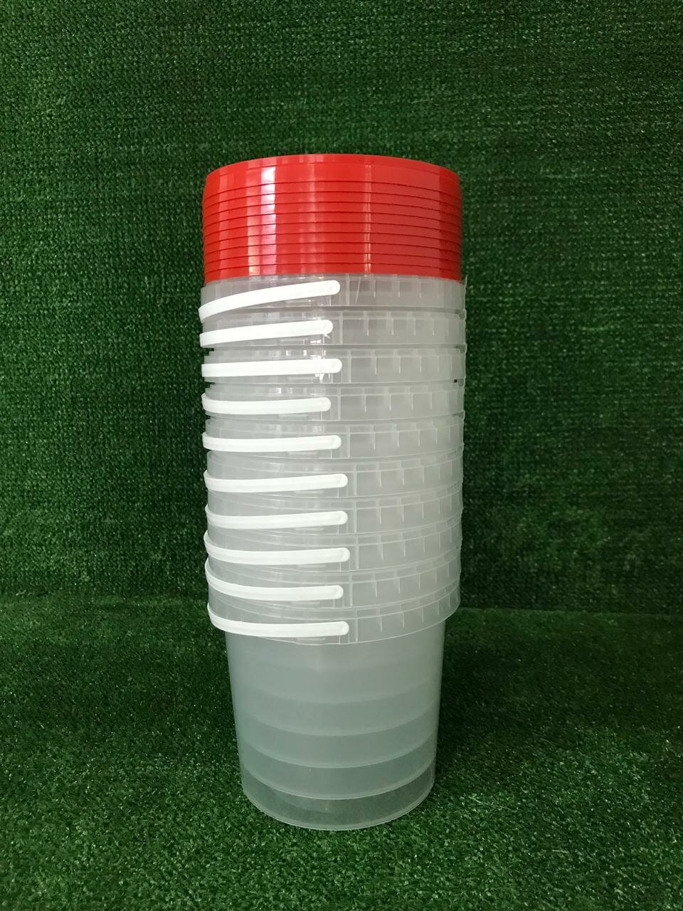 Купить Ведро 1л прозрачное с красной крышкой. набор 10 шт