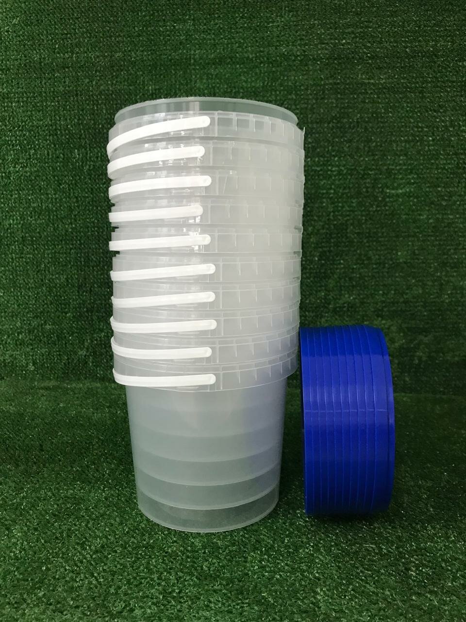 Купить Ведро 1л прозрачное с синей крышкой. набор 10 шт