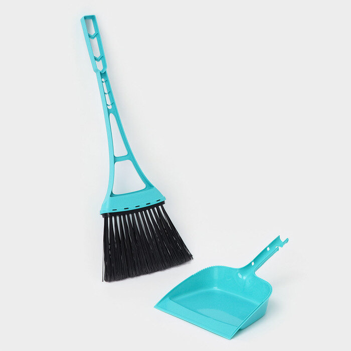 Купить Веник для пола «Практик», с совком, бирюзовый