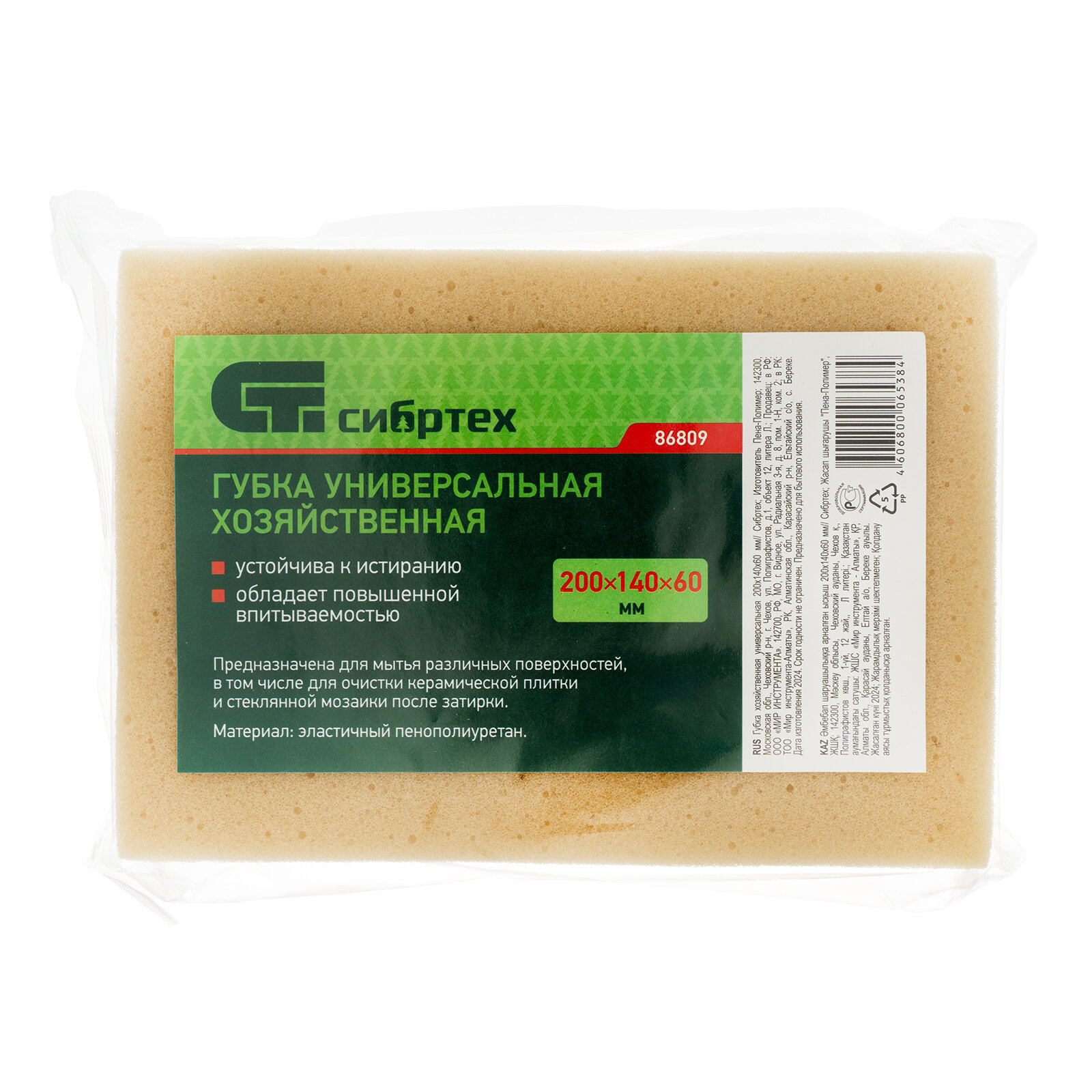 Купить Хозяйственная универсальная губка СИБРТЕХ 200х140х60 мм 86809