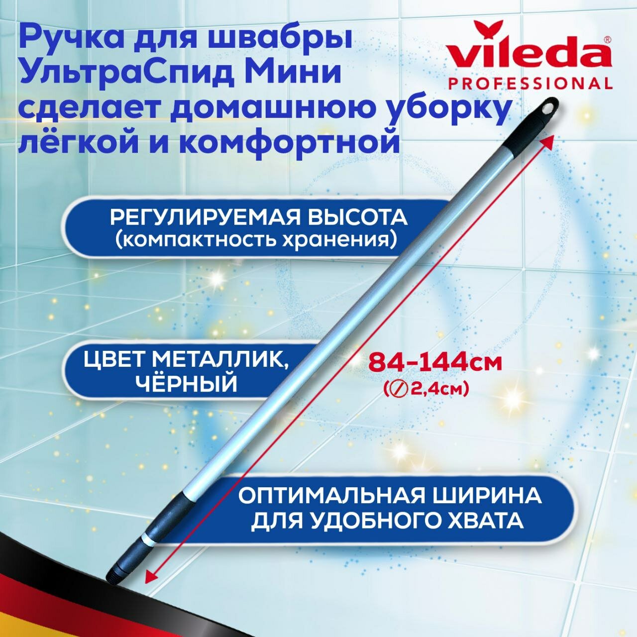 Рукоятка ручка телескопическая для швабры УльтраСпид мини Vileda Professional металлик 84-144см Виледа, 1шт интересное: