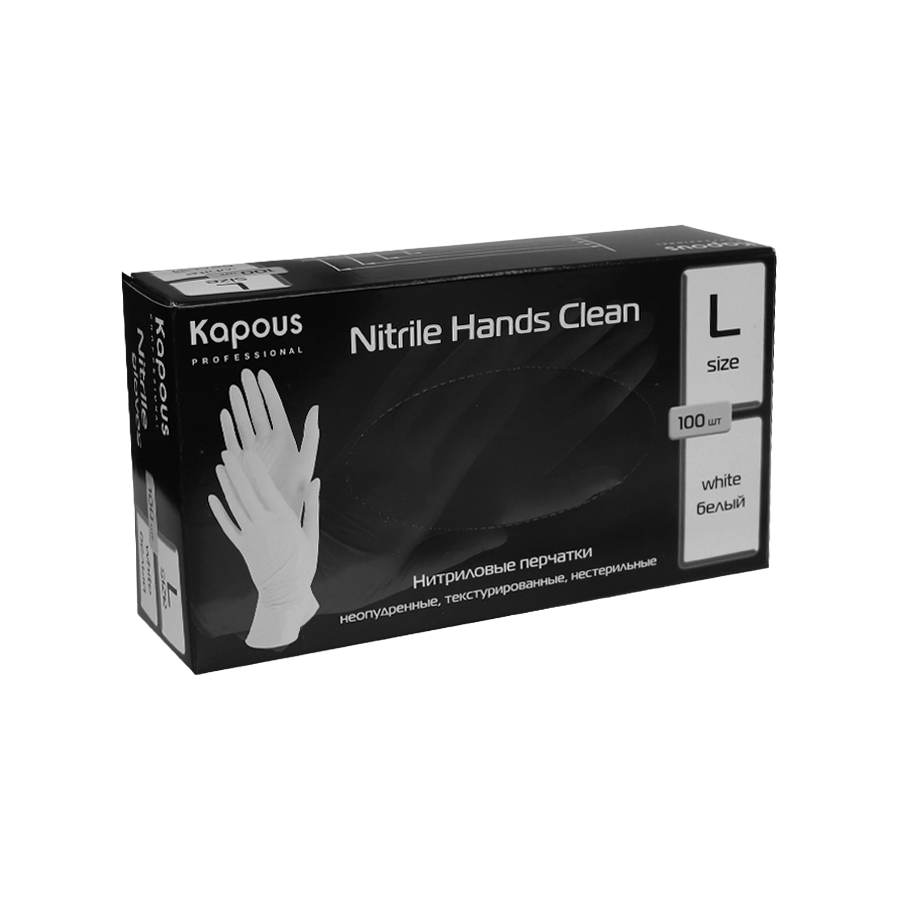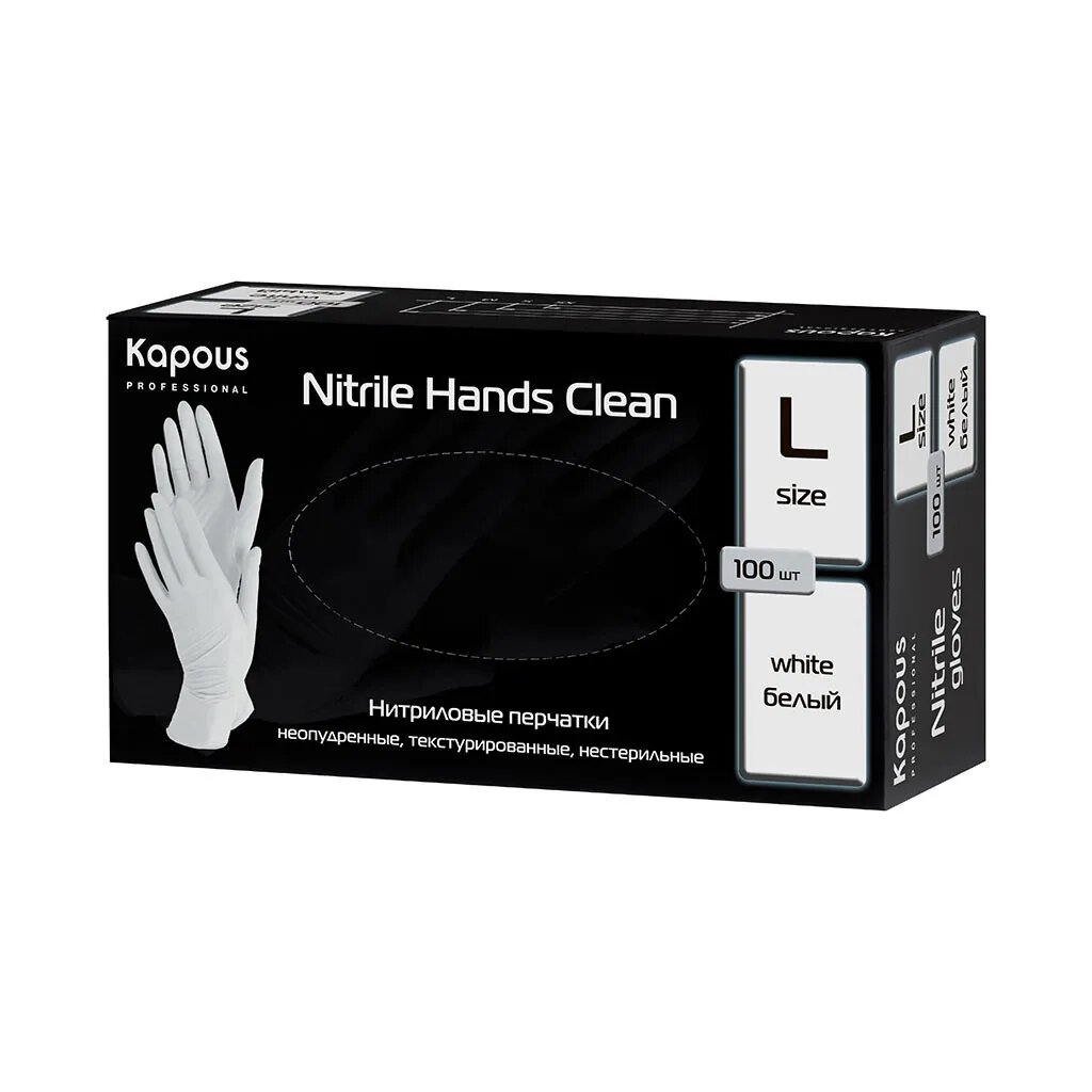 Купить Kapous Professional Перчатки нитриловые Nitrile Hands Clean, неопудренные, текстурированные, нестерильные, Белый, L, 100 шт