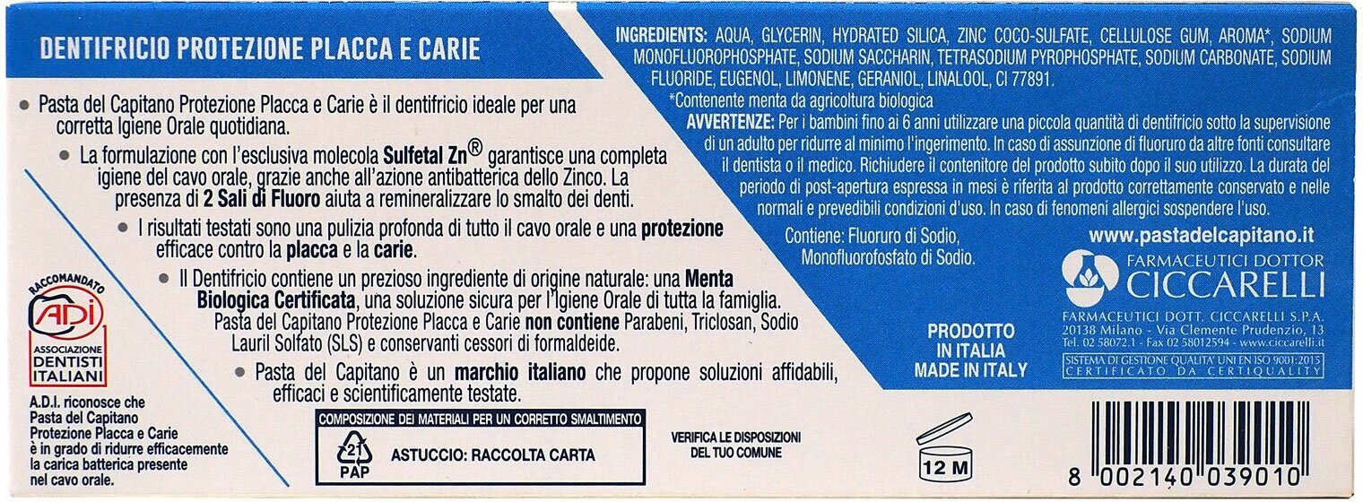 Купить PASTA DEL CAPITANO Зубная паста Plaques & Cavities, 75 мл