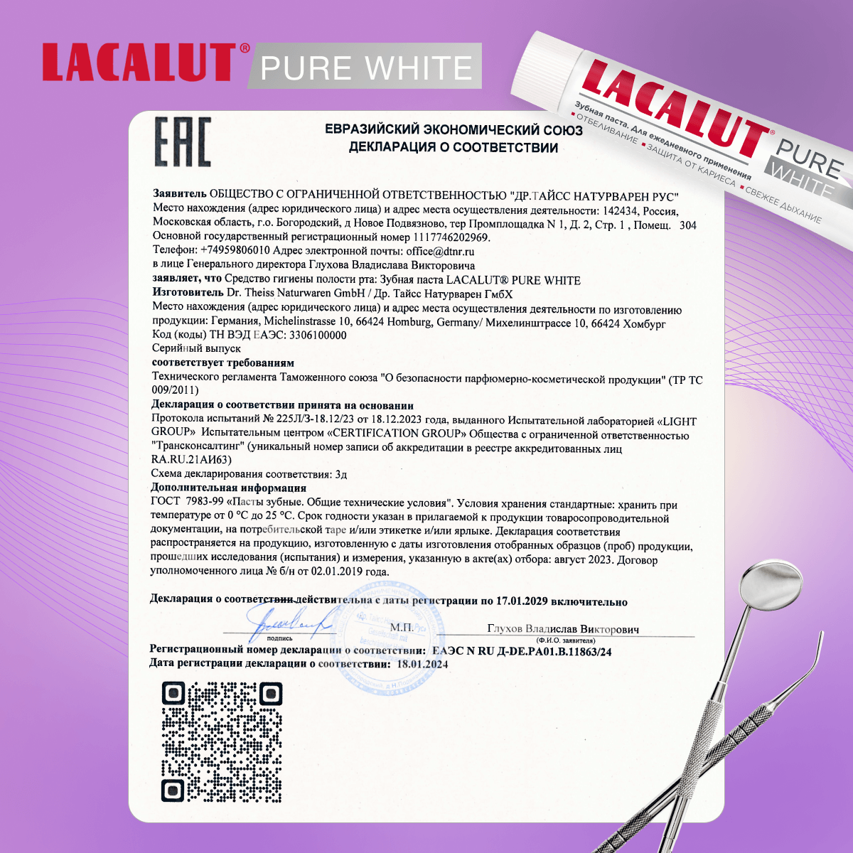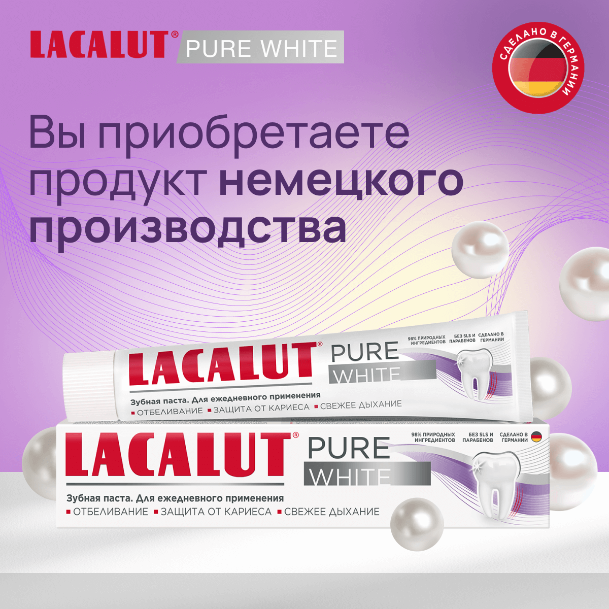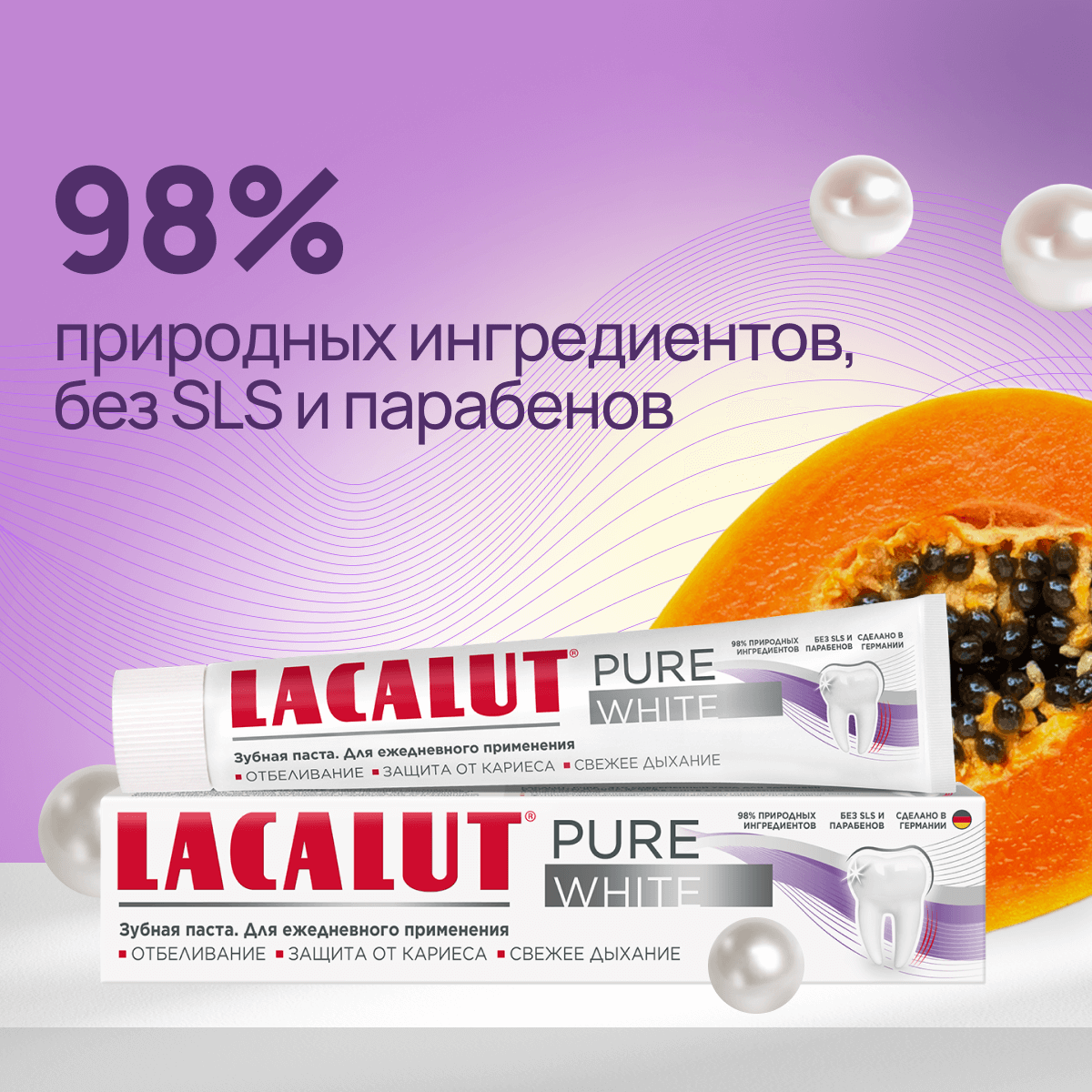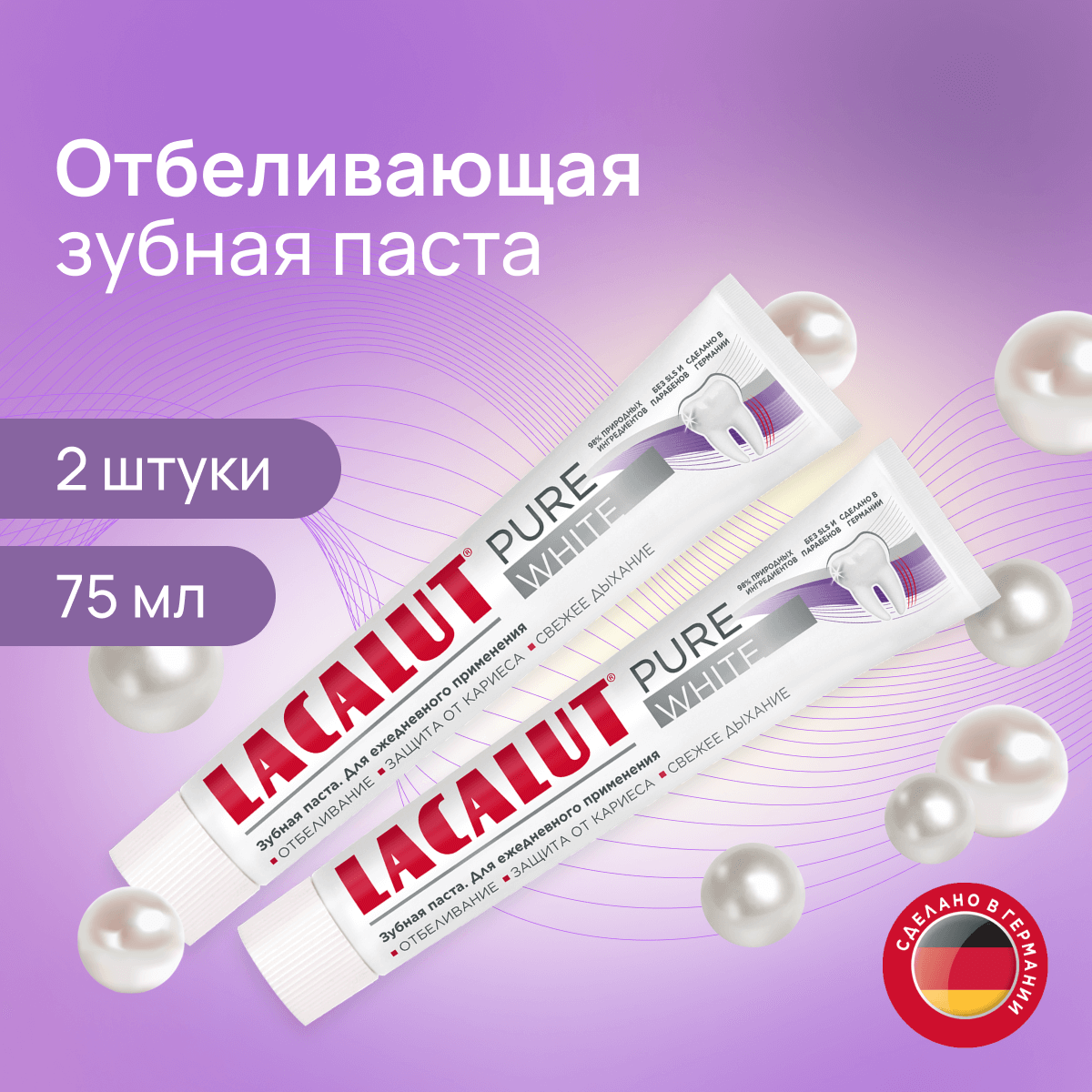 Зубная паста Lacalut "Pure White" 75мл, спайка из 2 штук