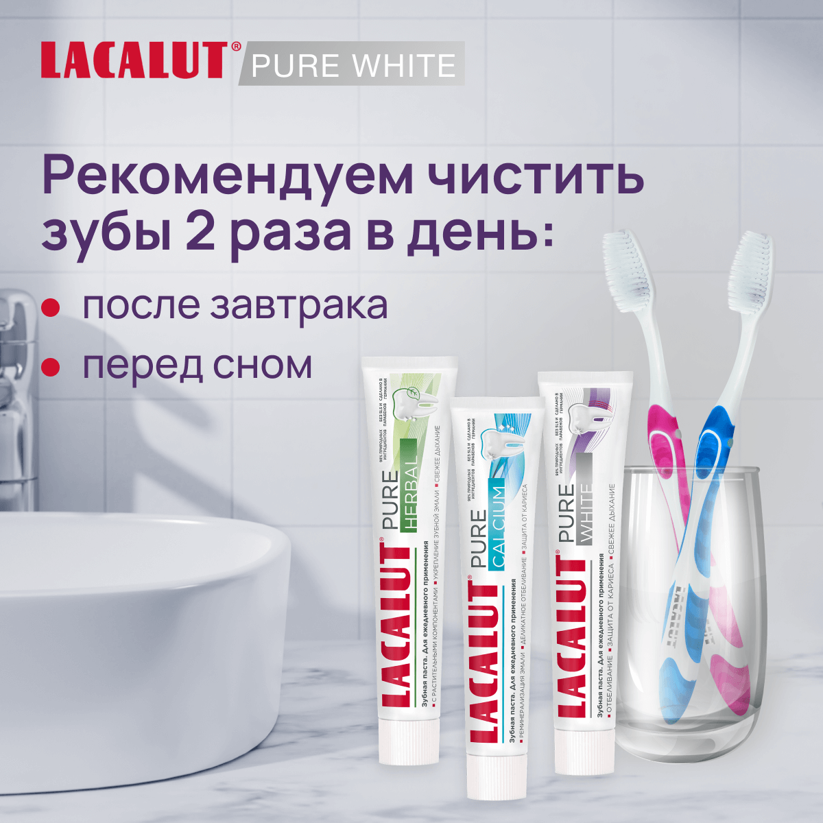 Зубная паста Lacalut "Pure Calcium" 75мл, спайка - 2шт