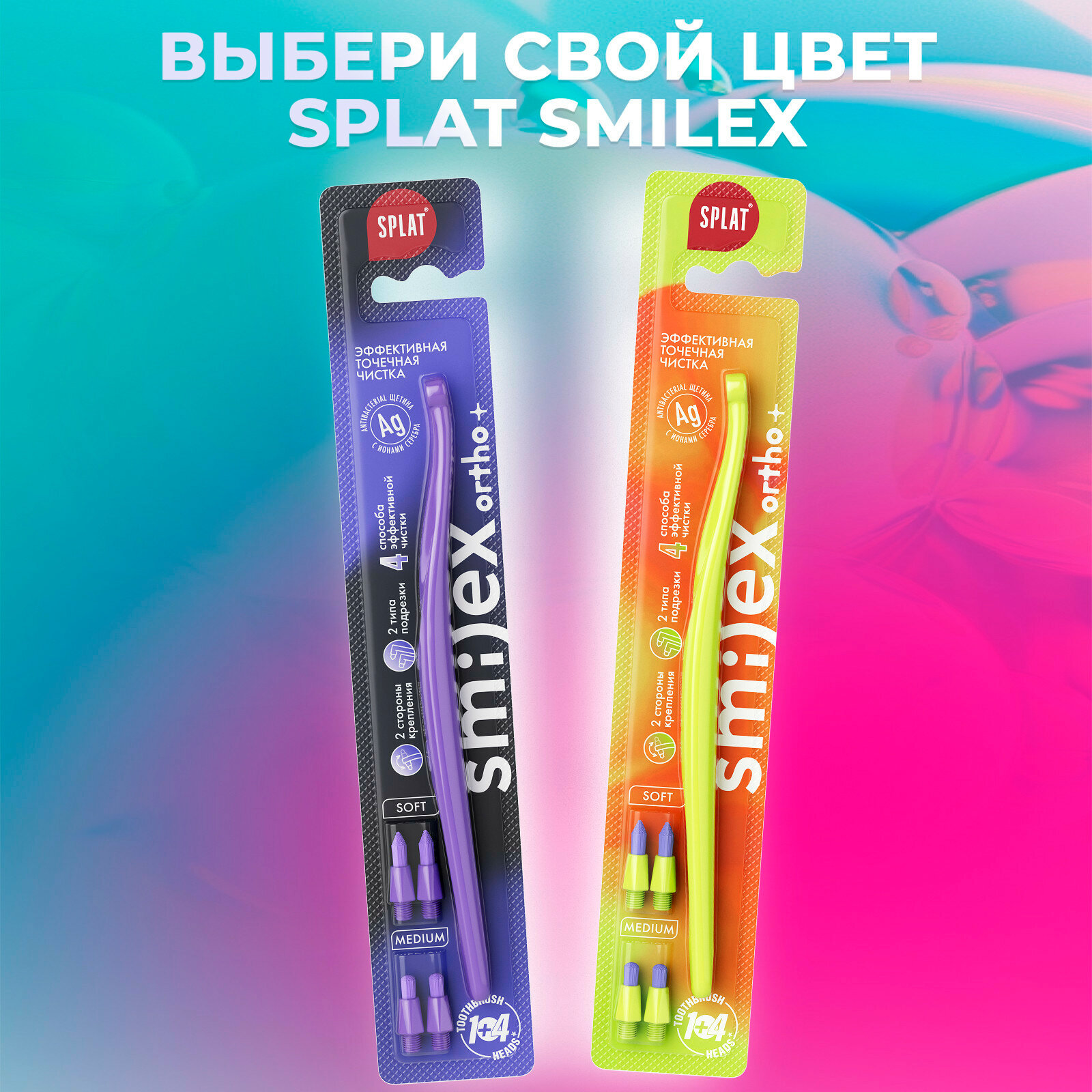 Купить Инновационная монопучковая зубная щетка SPLAT SMILEX ORTHO+ со сменными головками
