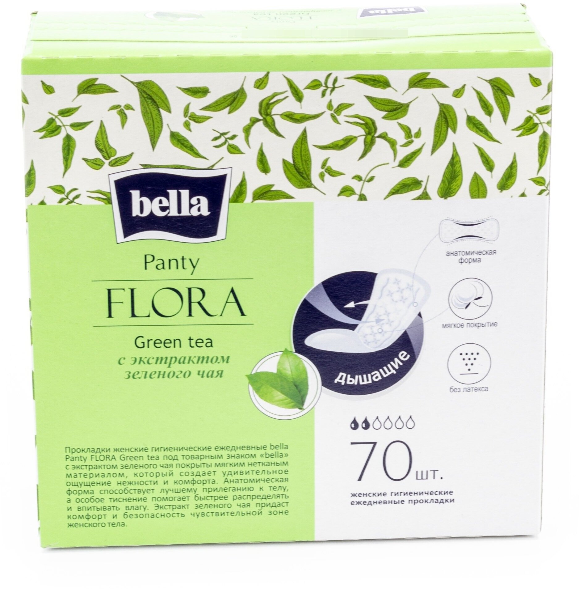 Прокладки ежедневные bella Panty FLORA Green tea с экстрактом зеленого чая, 70 шт./ ежедневки