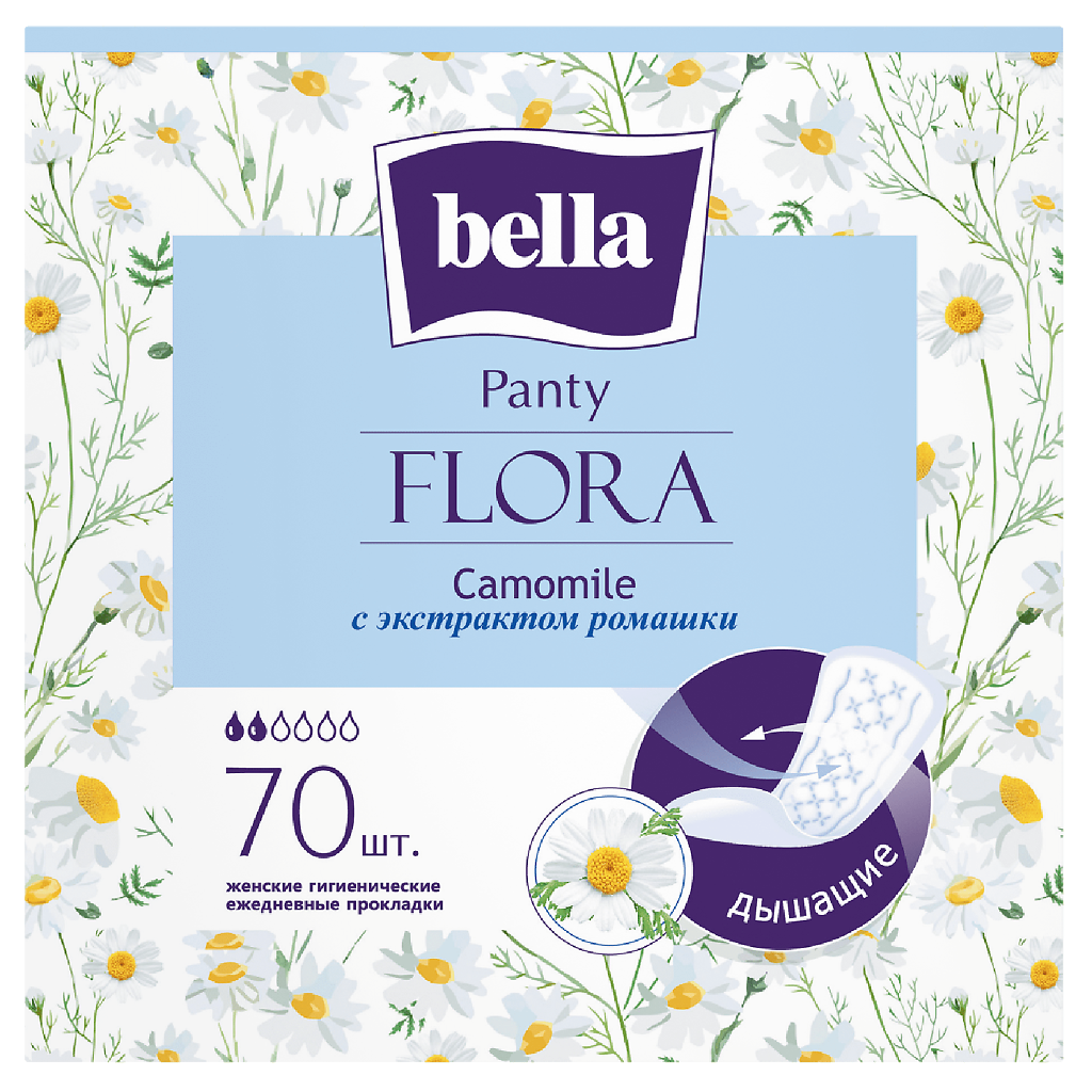 Прокладки ежедневные bella Panty FLORA Camomile с экстрактом ромашки, 70 шт./ ежедневки ромашка