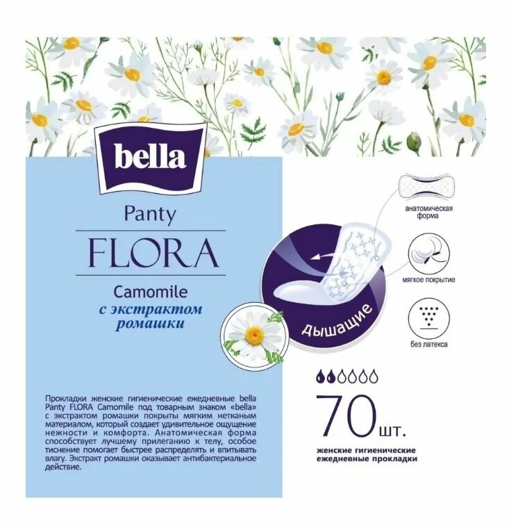 Bella прокладки ежедневные Panty flora camomile, 2 капли, 70 шт. интересное: