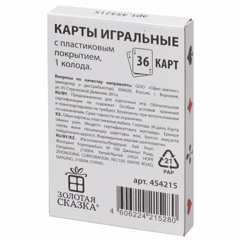 Золотая сказка игральные карты 454215 36 шт. белый/красный/зеленый 1 шт.