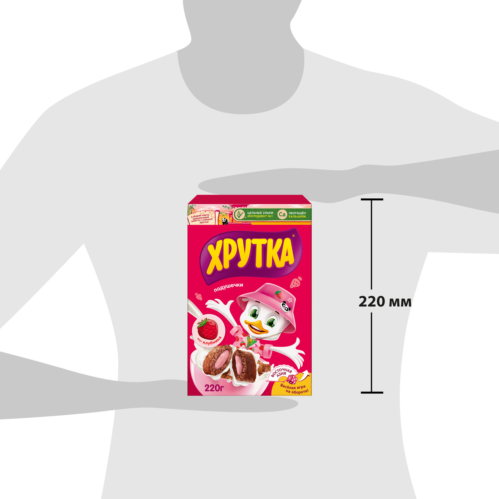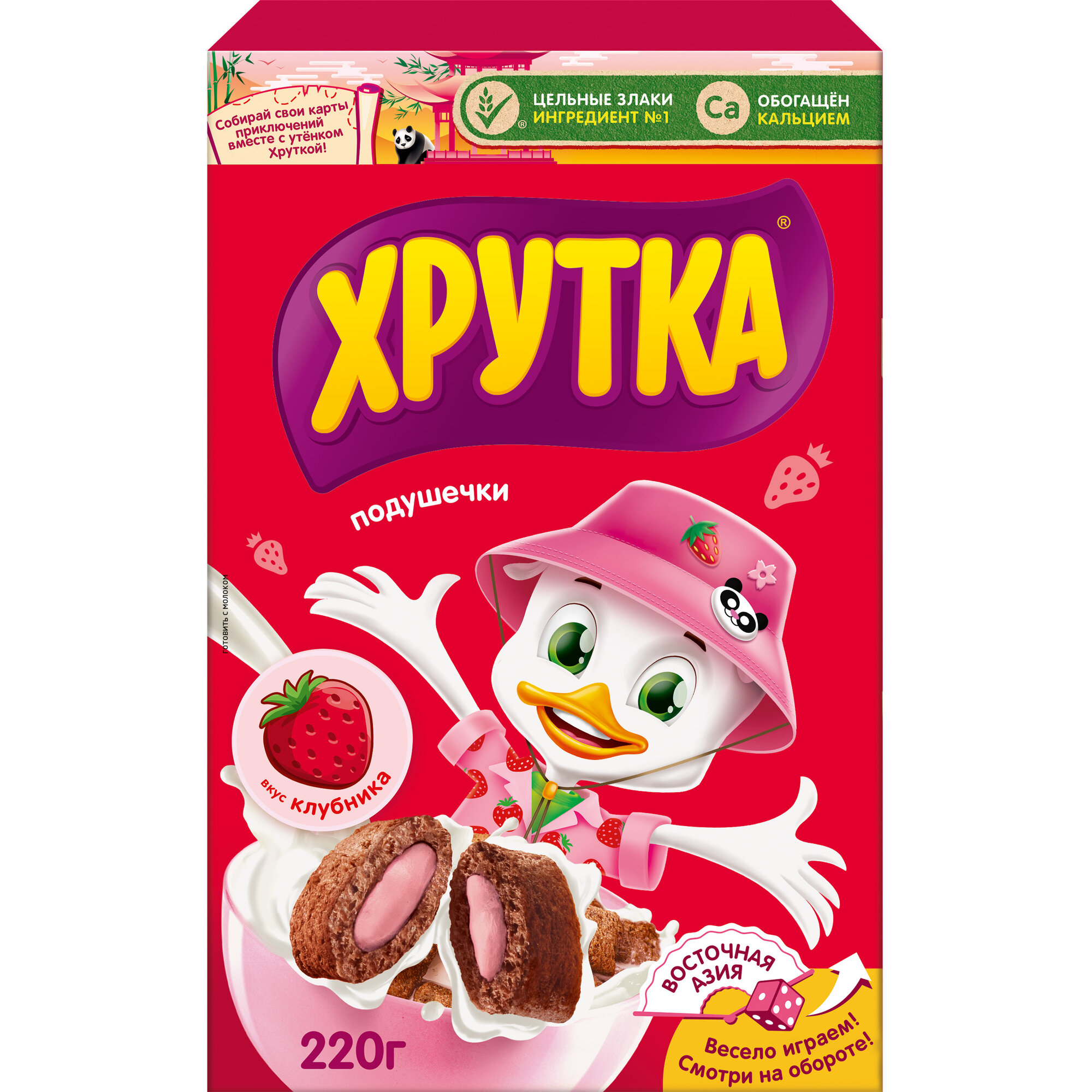 Готовый завтрак, "Хрутка" Злаковые подушечки с начинкой со вкусом клубники, обогащенные кальцием, 220г 8 шт
