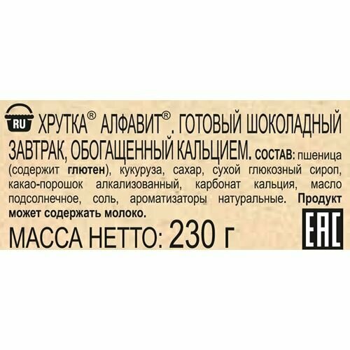 Готовый завтрак, "хрутка Алфавит", шоколадные шарики, 230г интересное: