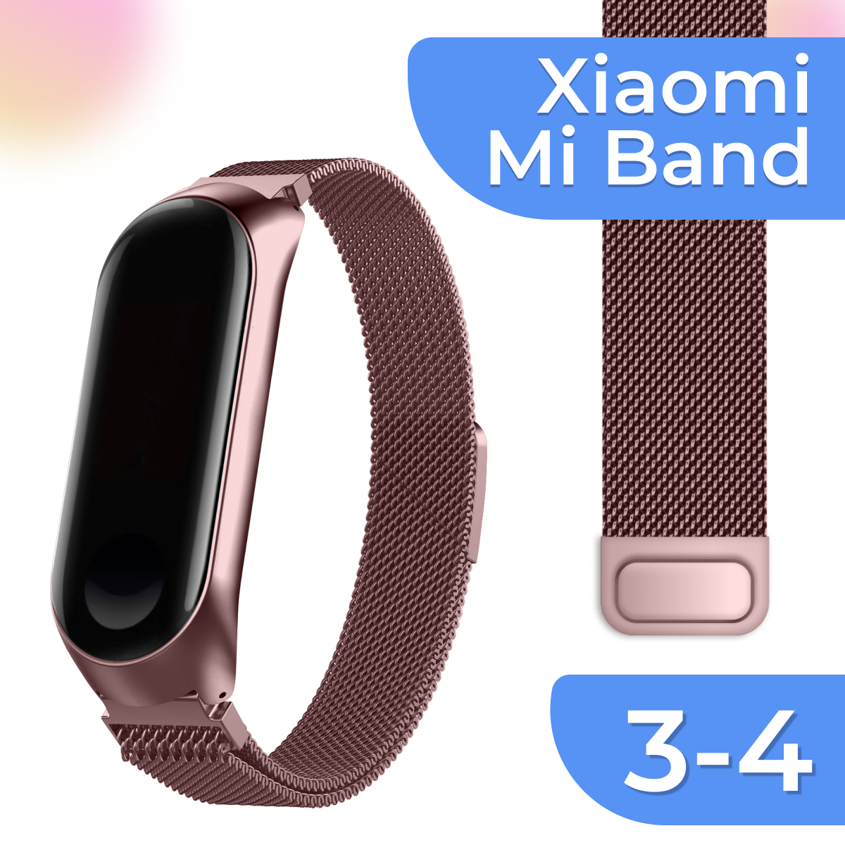 Купить Ремешок для фитнес браслета Xiaomi Mi Band 3 и Mi Band 4 Миланская петля / Металлический браслет для смарт часов Сяоми Ми Бенд 3, 4 (Сиреневый)