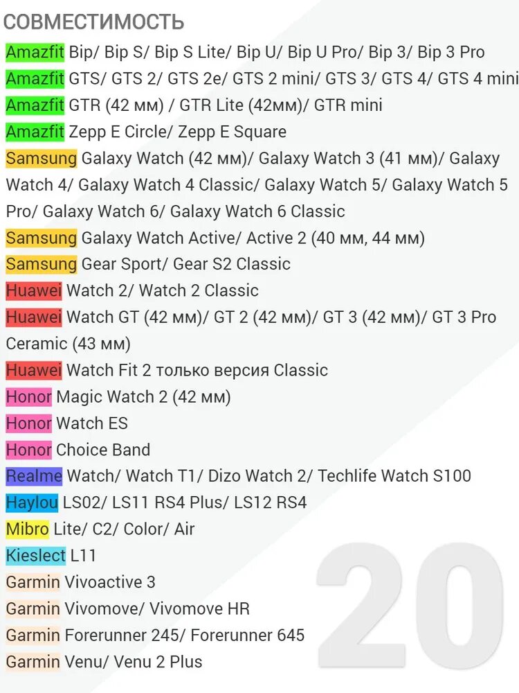 | Совместимые модели умных часов | Huawei Watch |