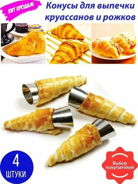 Набор кулинарных насадок конусов для выпечки трубочек и рожков 13х2,5 см., 4 шт. интересное: