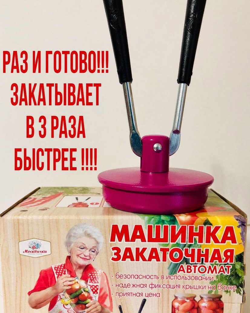 Ниже Вы можете прочитать отзывы на Машинка закаточная, автомат, ТМ "Москвичка", подарочная, г.Борович, ознакомится с подробными характеристиками, посмотреть интересные обзоры и фотографии на Машинка закаточная, автомат, ТМ "Москвичка", подарочная, г.Борович.
