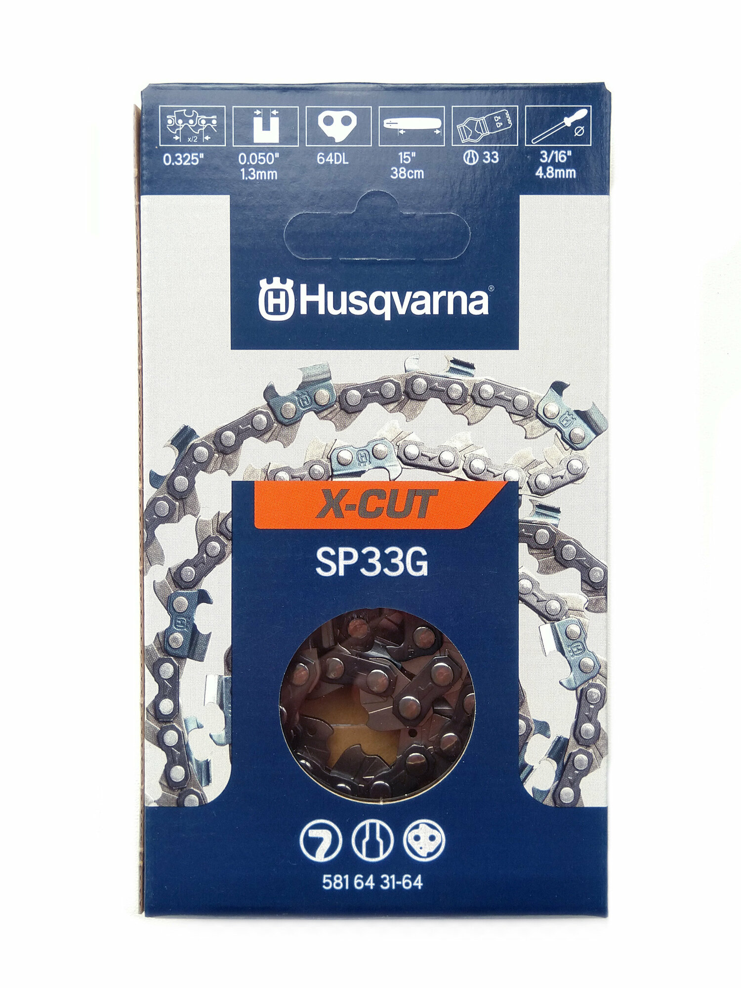 Цепь Husqvarna X-Cut SP33G, 15"/38см, 0.325", Pixel, 1.3 мм, 64 хвостовика, LowVib