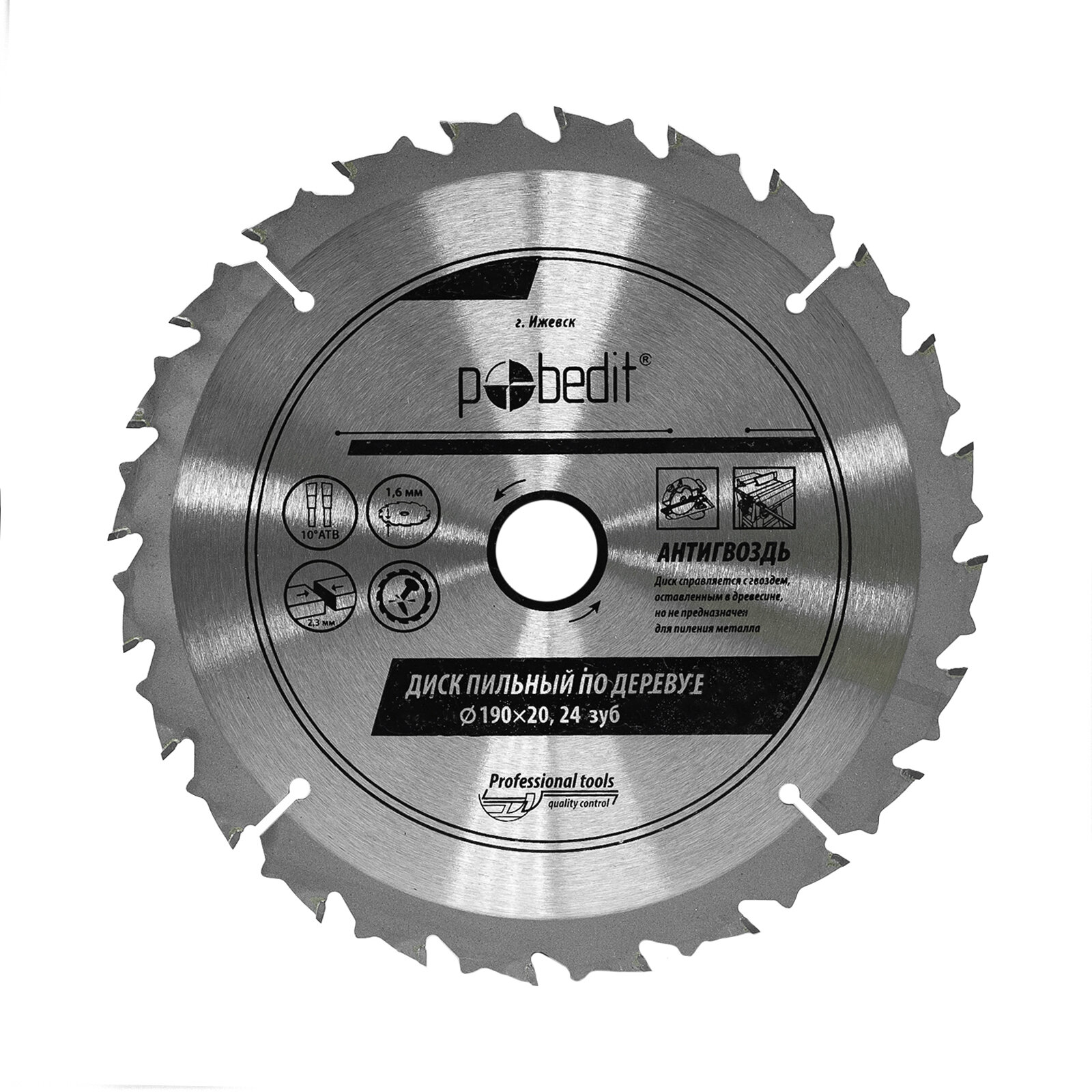 Диск пильный по дереву Pobedit "Антигвоздь" 190x20, 24 зуба интересное: