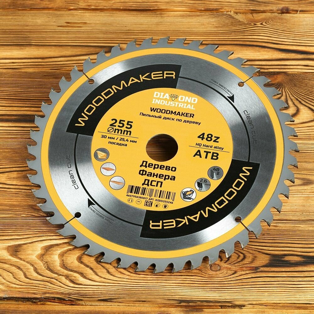 СохранитьДиск пильный по дереву 255х30/25,4 мм Z 48 АТВ WoodMaker DIDD255Z48 интересное: