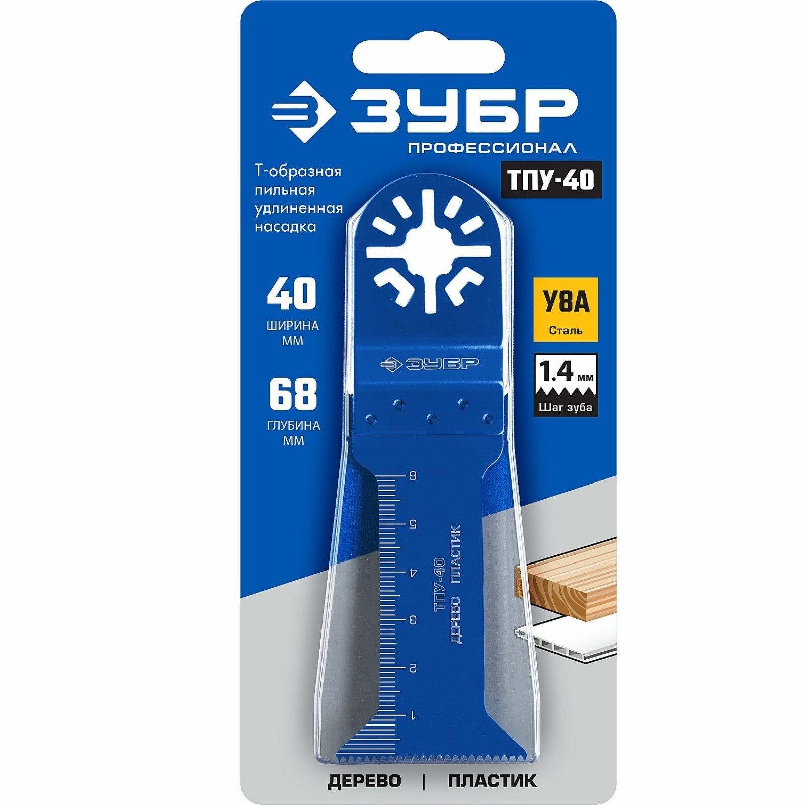 Насадка Т-образная пильная удлиненная, 40х68мм, сталь У8А толщиной 0,6мм, шаг зуба 1,4мм, OIS-хвостовик, ЗУБР ТПУ-40 , по дереву пластику, (15566-40)