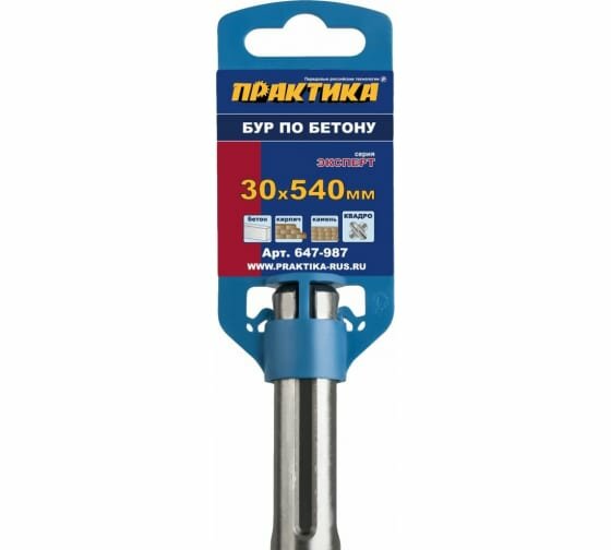 Бур по бетону SDS-MAX 30х540 мм; квадро; серия "Эксперт" ПРАКТИКА 647-987